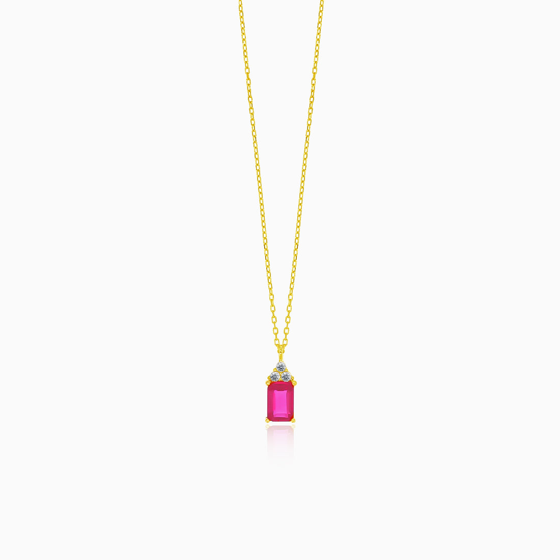 Nádherný zlatý náhrdelník s přívěskem ze syntetického rubínu