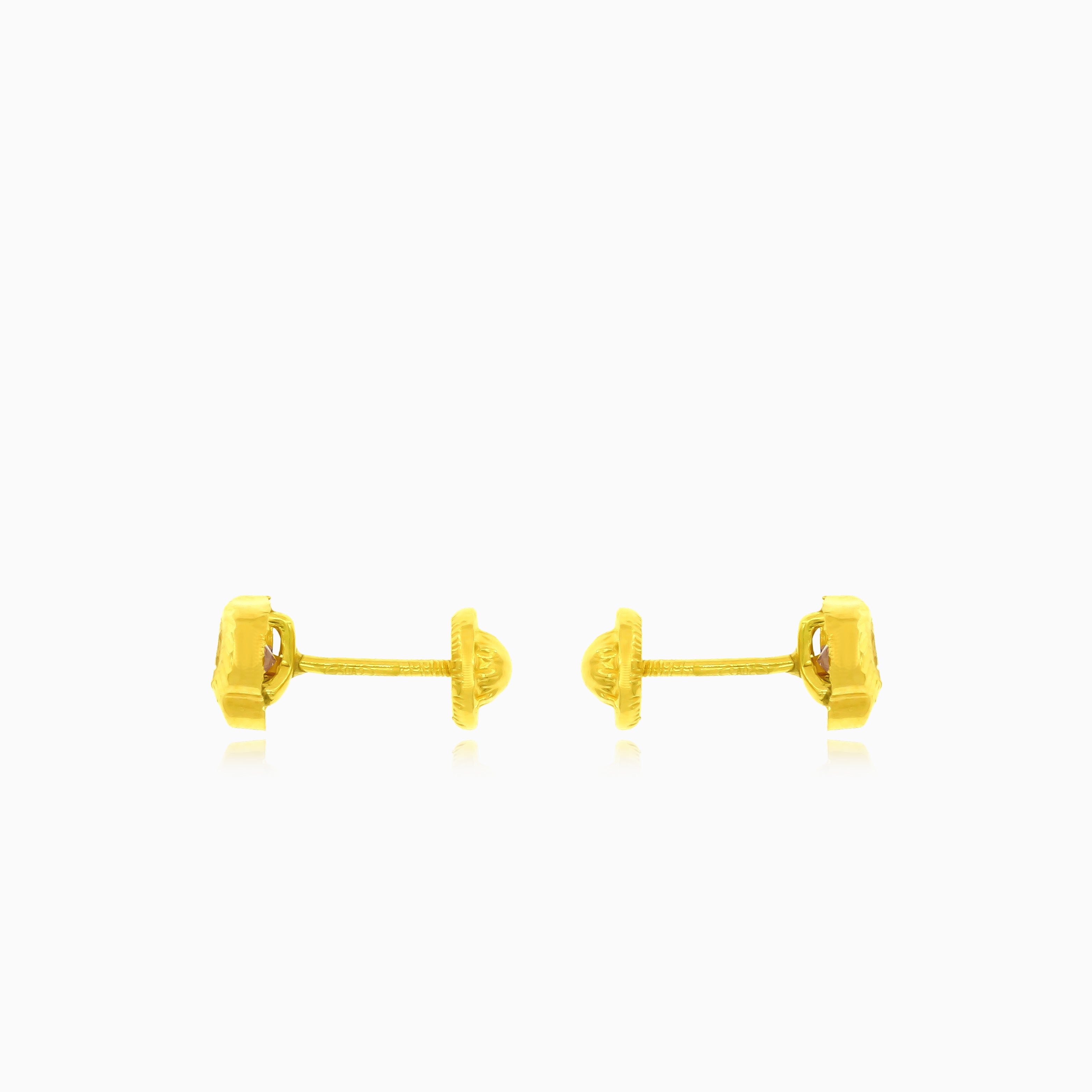 Malé půvabné náušnice z 18kt žlutého zlata pro ženy, zajištěné šroubovacím zapínáním, zvýrazněné kulatým jemným zirkonem ve stupňovitém výbrusu v rámečku.