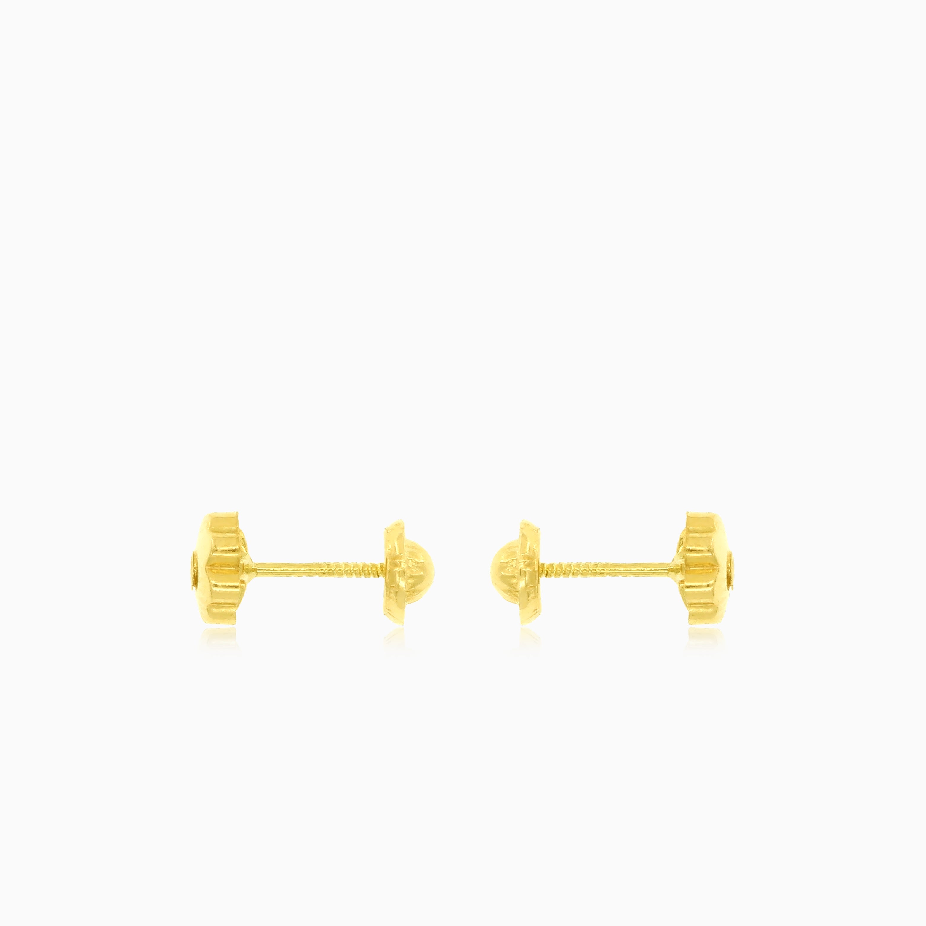 Moderní dámské náušnice z 18kt žlutého zlata zdobené třpytivým kulatým průhledným zirkonem a zajištěné stylovým šroubovacím zapínáním.