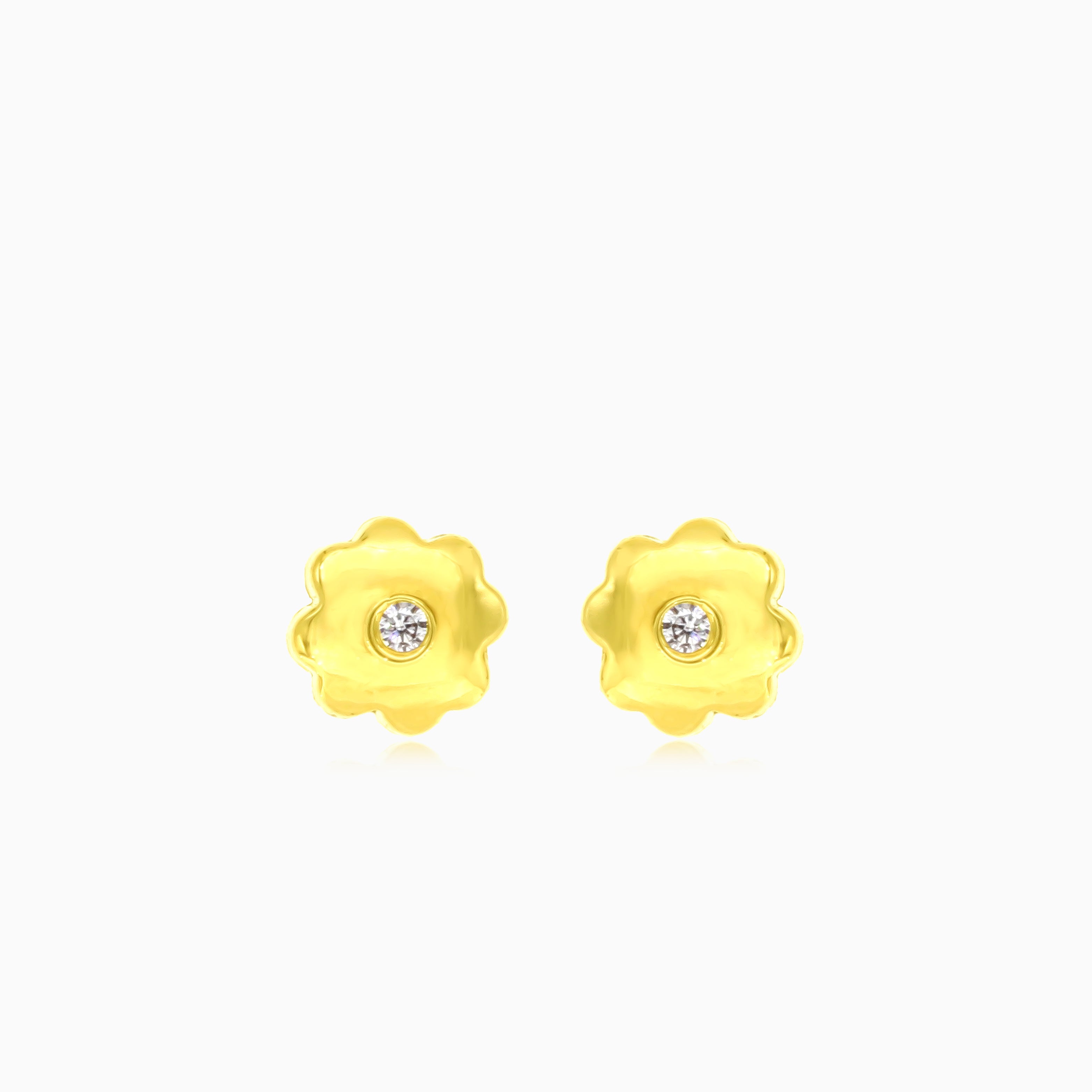 Náušnice ze žlutého zlata s květinou a kubickým zirkonem