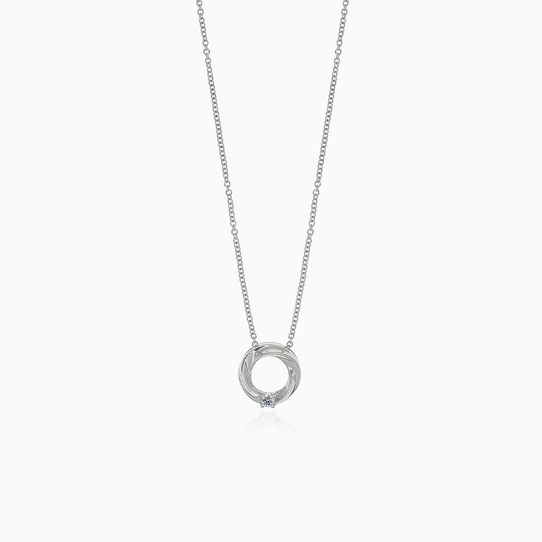 Elegantní náhrdelník z bílého zlata s jedním třpytivým solitérním diamantem, který symbolizuje čistotu a nadčasovou eleganci. Jemný design dodává šperku osobitý šarm — ideální pro výjimečné okamžiky i každodenní nošení.