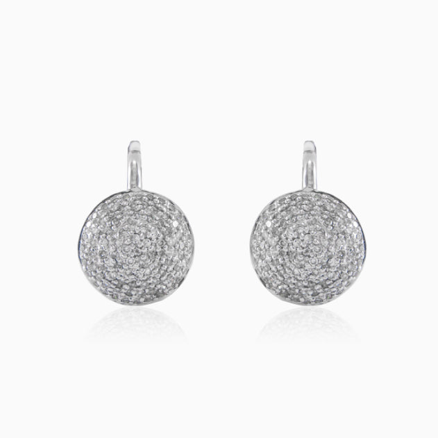 Jednoduchý, stylový a romantický design náušnic z 14-karátového bílého zlata s diamanty v pave osazení.