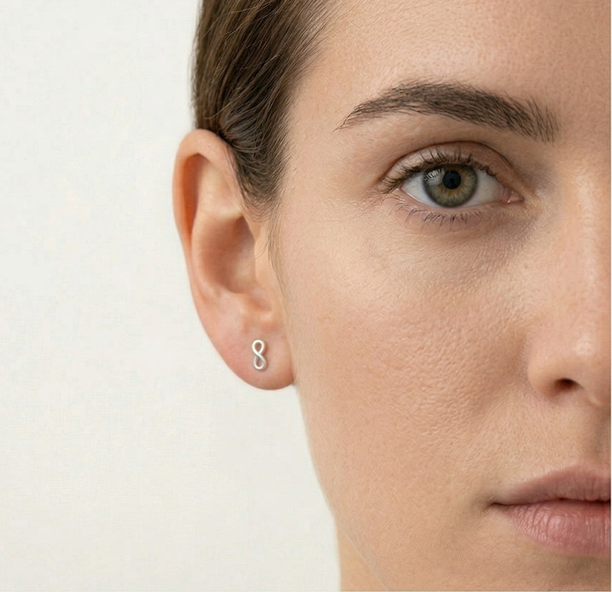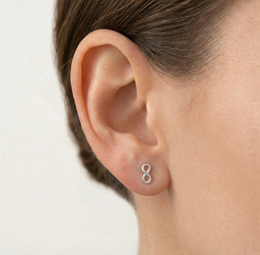 Vylepšete svůj styl s našimi minimalistickými stříbrnými náušnicemi Infinity Stud, které jsou nádherně navržené bez kamenů a působí elegantně a nadčasově.