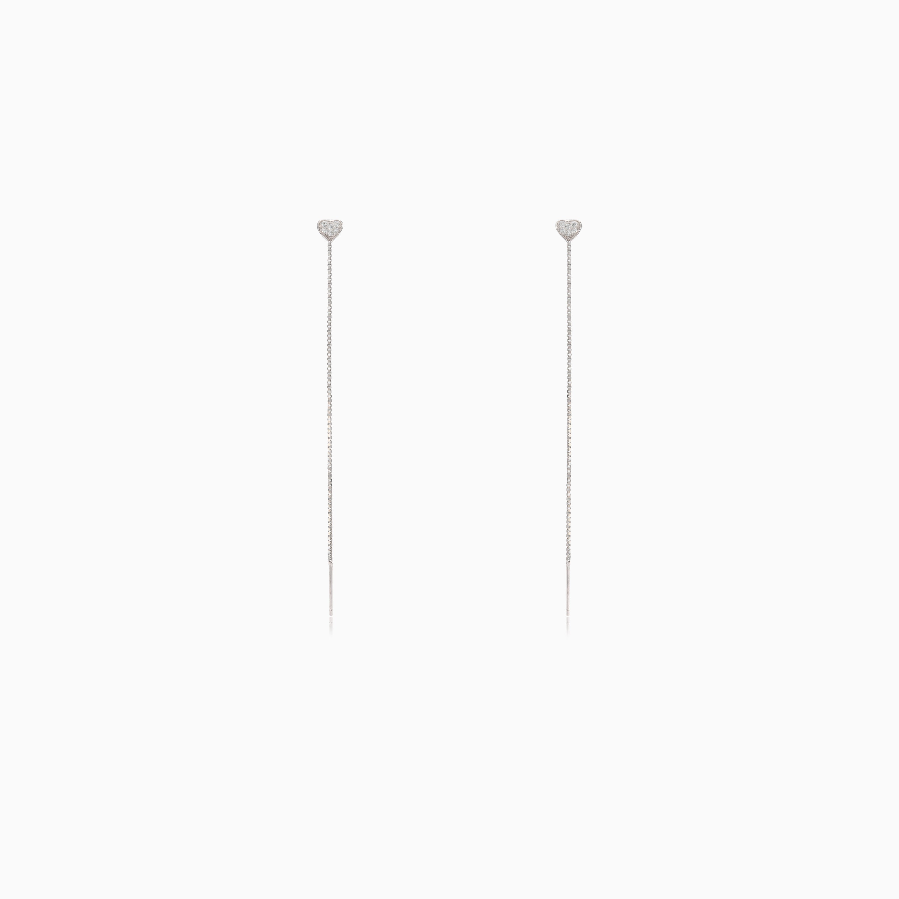 Tyto jemně zpracované stříbrné náušnice s navlékacím srdcem mají třpytivé zirkony a dodají každému vzhledu eleganci.