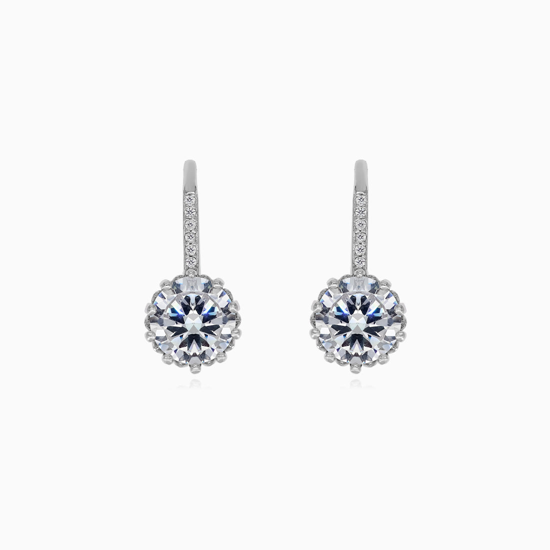 Dodejte svému vzhledu styl s těmito stříbrnými náušnicemi s třpytivými kulatými zirkony v jemném stupňovitém výbrusu. Kameny jsou bezpečně uchyceny v závěsných hrotech a zapínání na páčku zajišťuje pohodlí a bezpečné uchycení, takže jsou ideální pro každou příležitost.