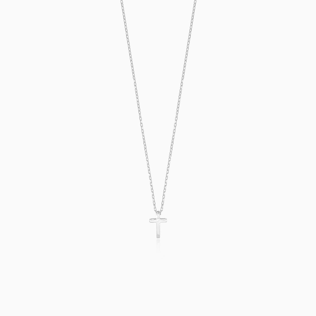 Tento krásný náhrdelník je vyroben z 14 kt bílého zlata. Má přívěsek v podobě kříže, který je navlečen na řetízku. Jednoduchost a minimalismus. Náhrdelník má zapínání kroužek s pružinou.