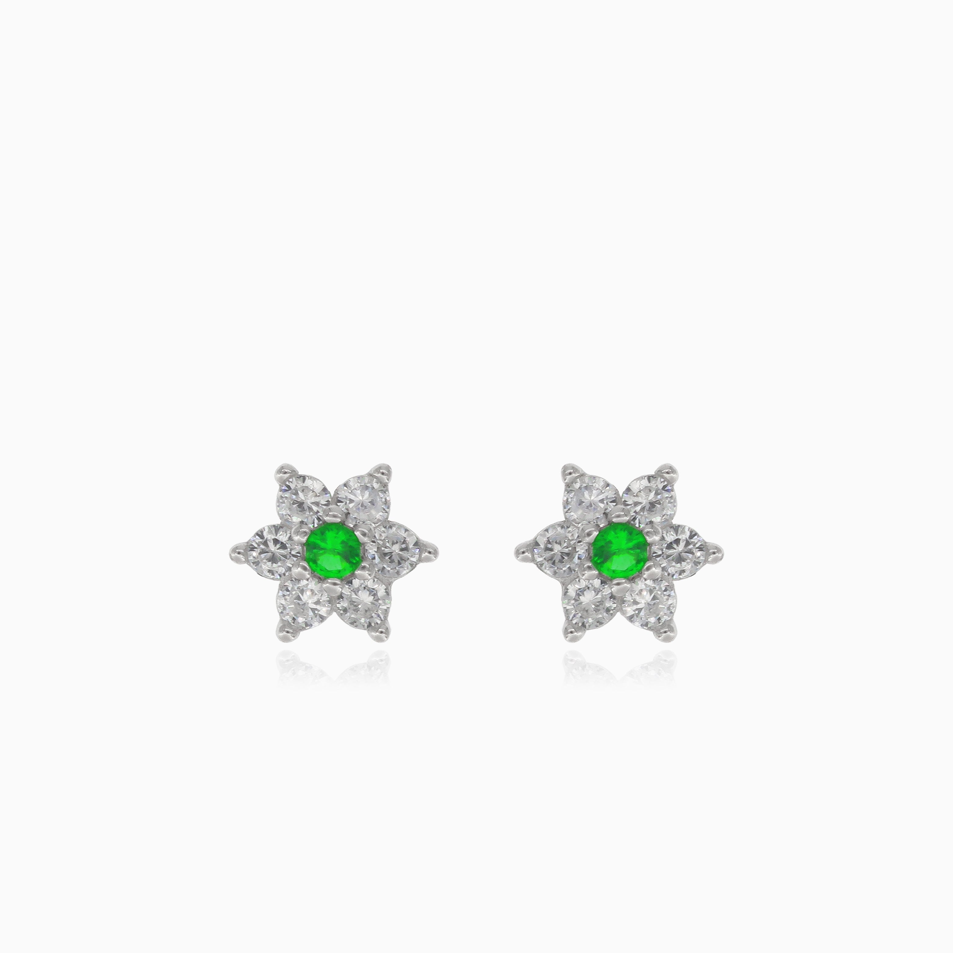 Stříbrné náušnice hvězda se syntetickým smaragdem a zirkony