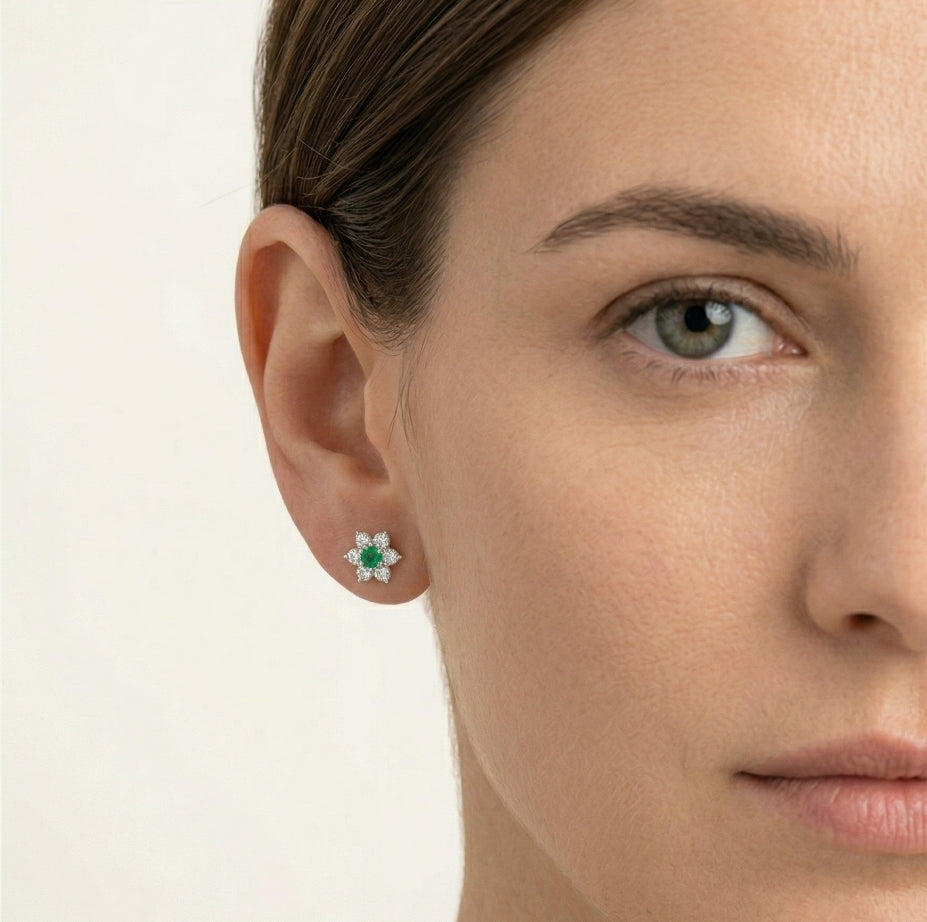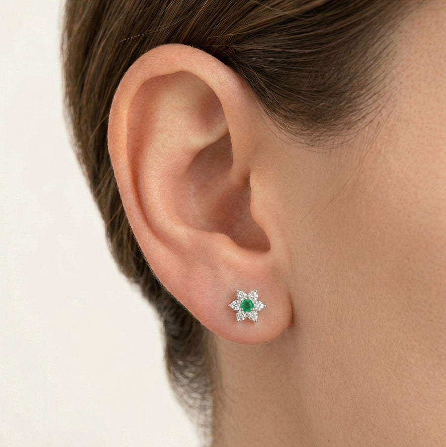 Rozzařte svůj styl těmito podmanivými stříbrnými náušnicemi Stars Stud se syntetickými smaragdy a kubickými zirkony, které dodají kouzlo každému oblečení.