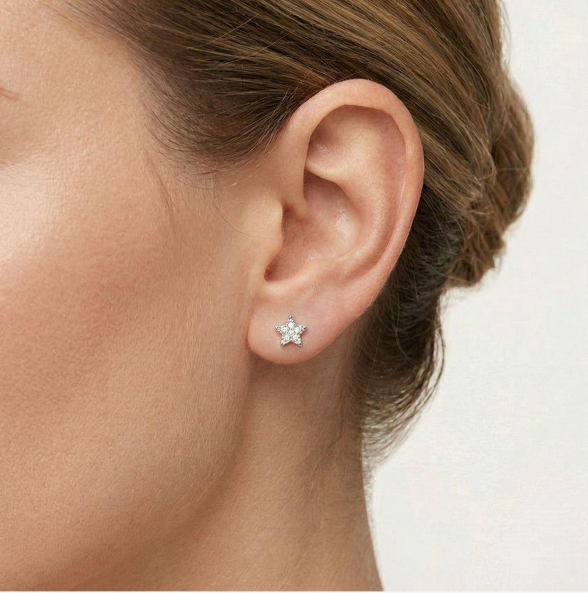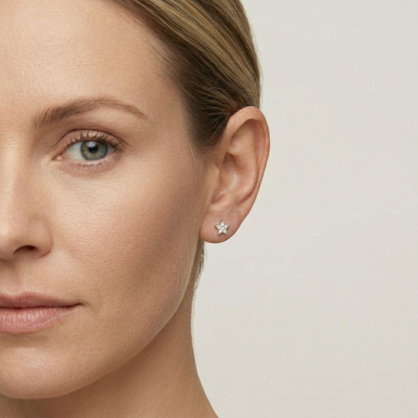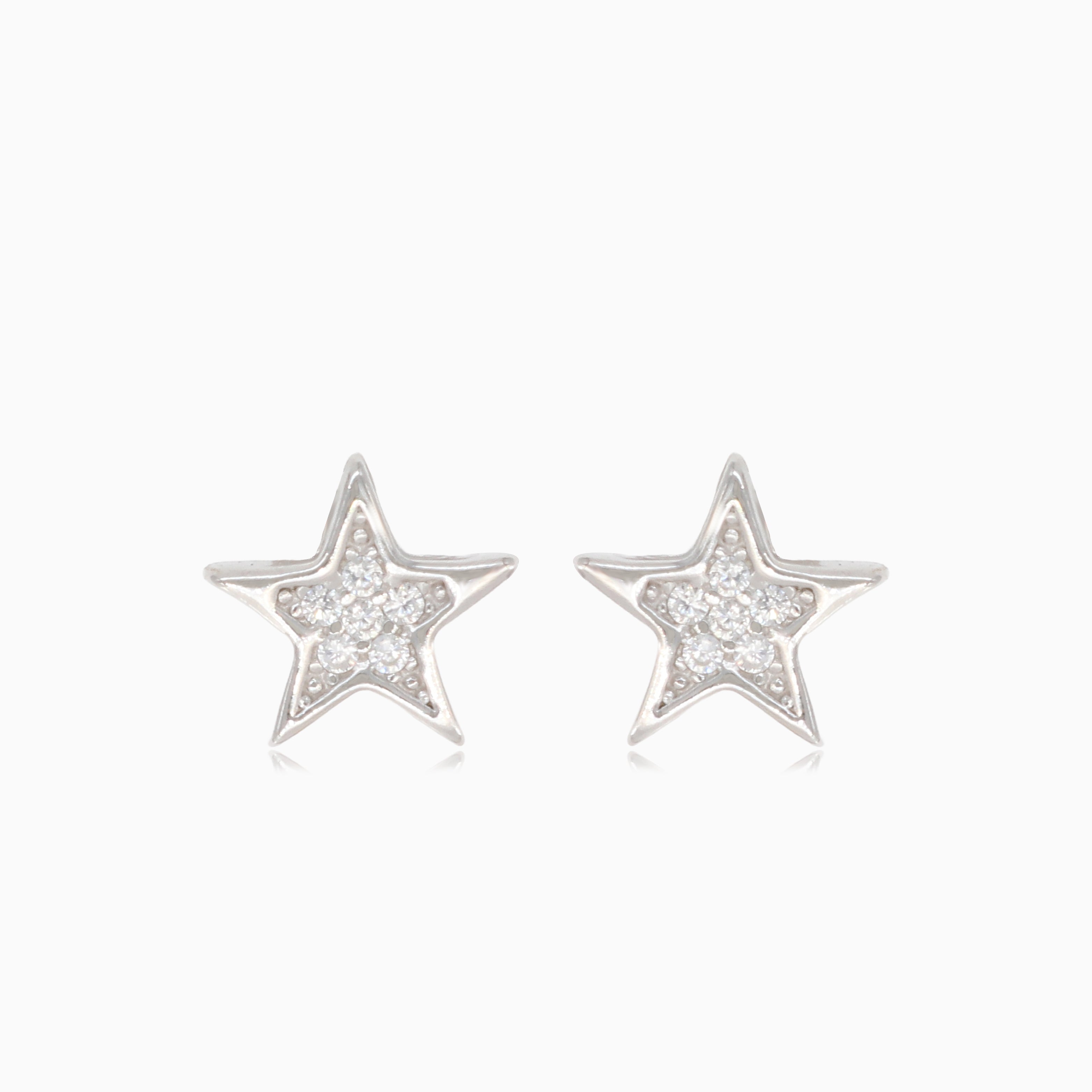 Rozkošné stříbrné hvězdicové náušnice zdobené třpytivými zirkony, které dodají vašemu outfitu nebeské kouzlo.