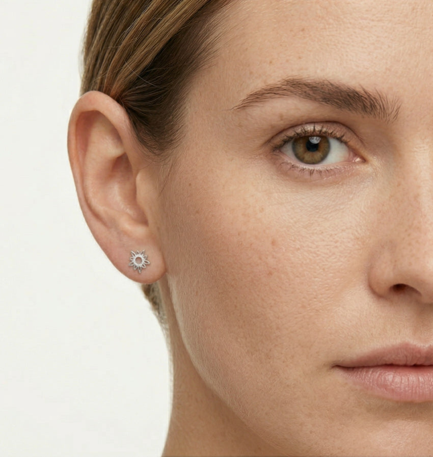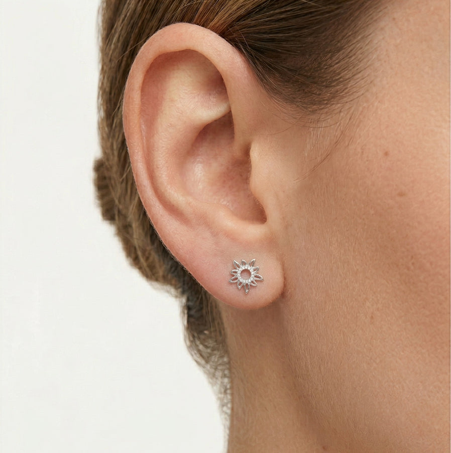 Vyzařujte eleganci s našimi stříbrnými slunečními náušnicemi zdobenými třpytivými kubickými zirkony, které zachycují lesk nebeského tělesa.