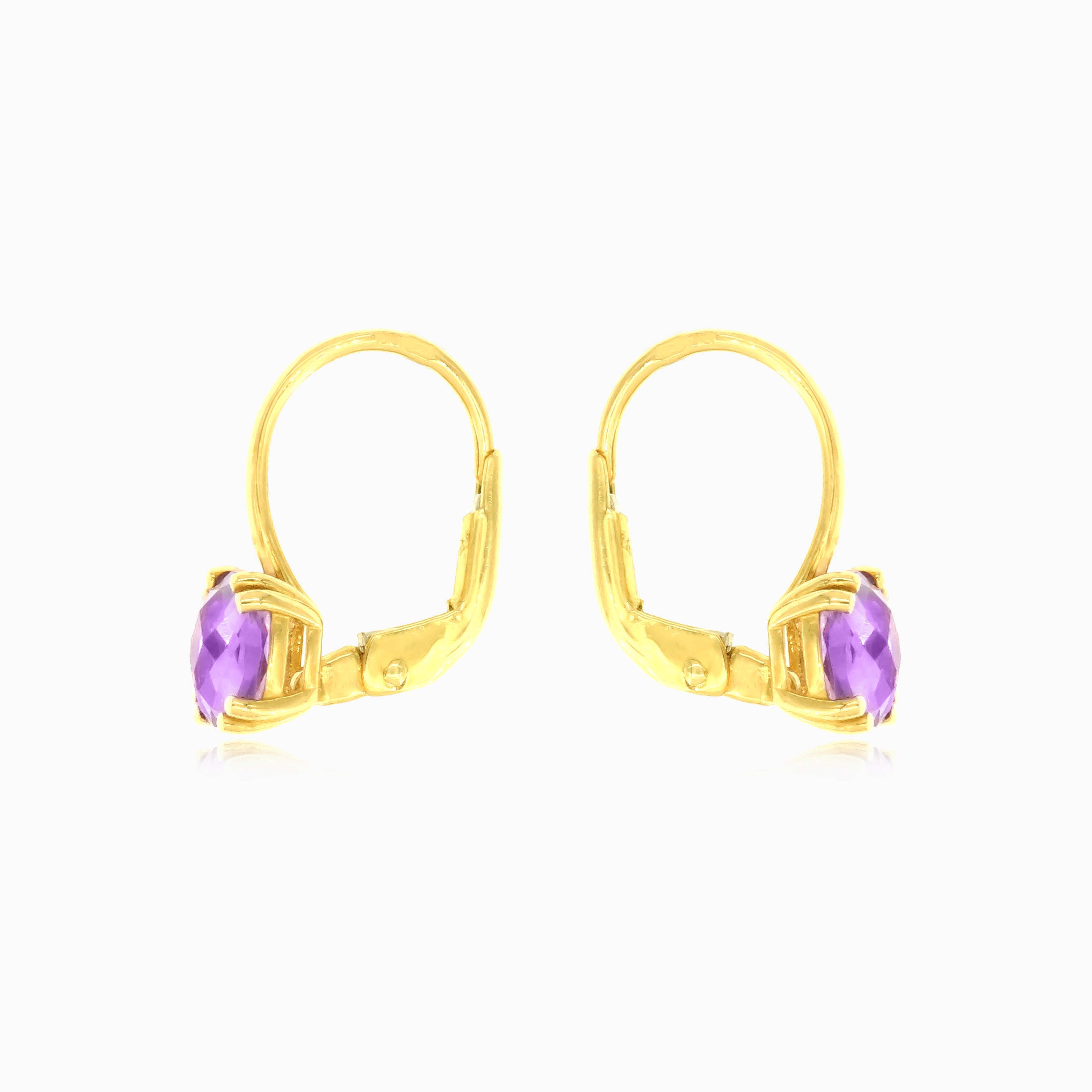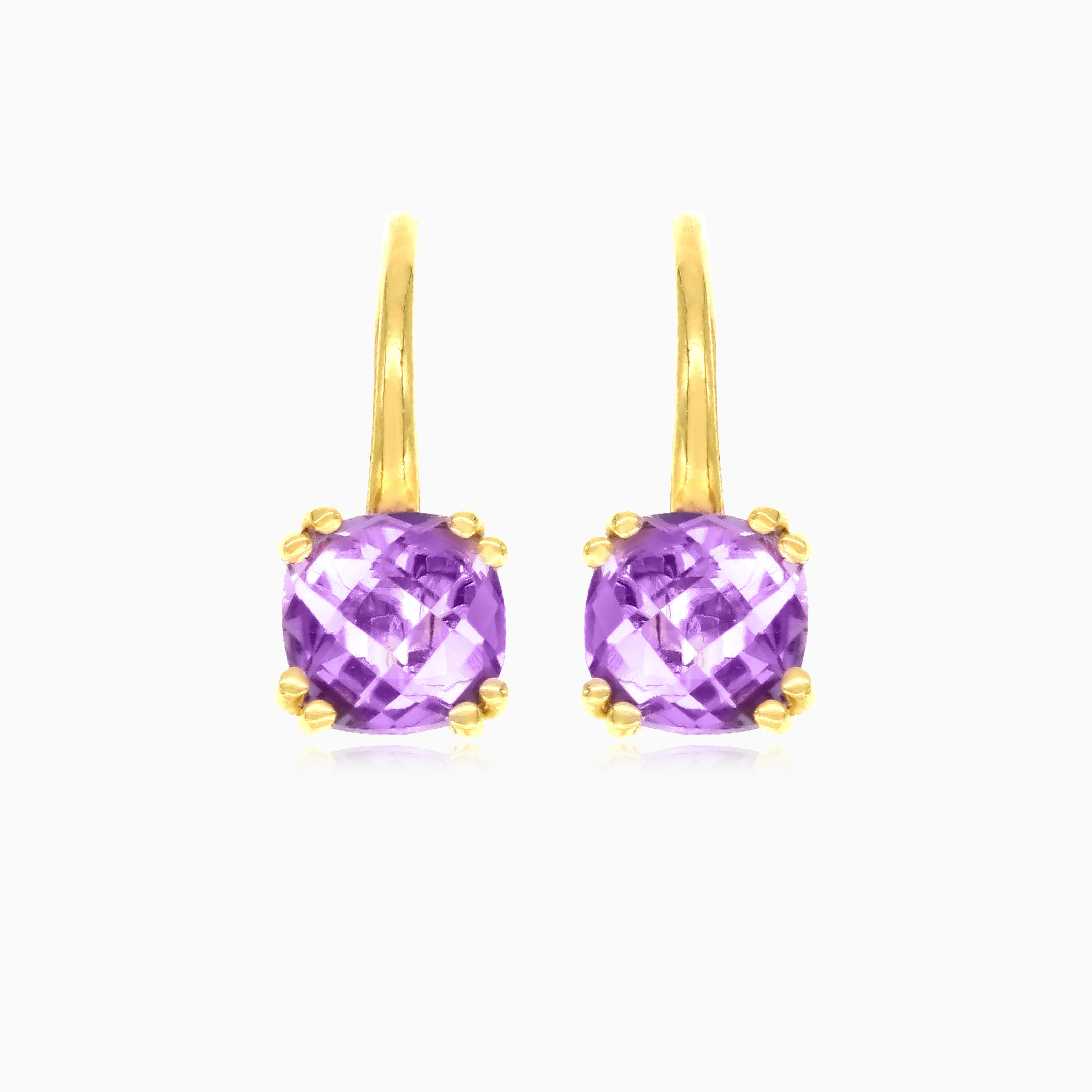 Oživte svůj styl dámskými náušnicemi ze 14kt žlutého zlata, které se pyšní zářivým fialovým topazem ve tvaru polštářku. Bezpečné zapínání na páčku dodává náušnicím šmrnc i lehkost a jsou stylovou a praktickou volbou.