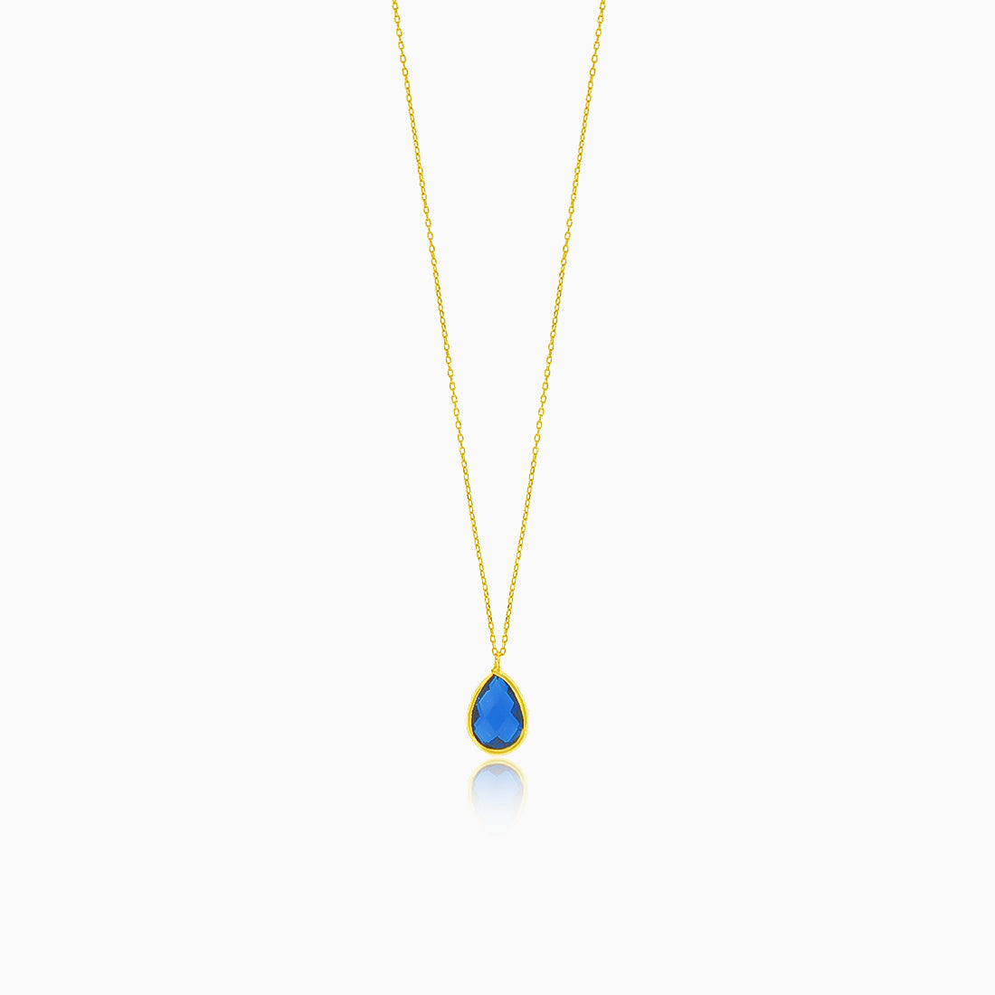 Jemný zlatý náhrdelník ve tvaru kapky se syntetickým safírem