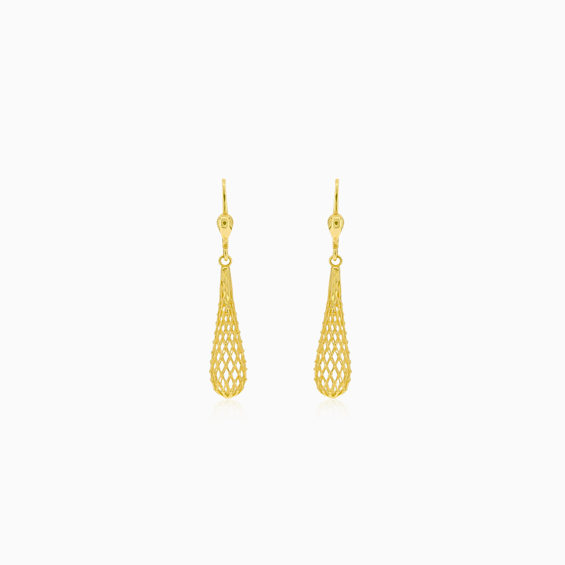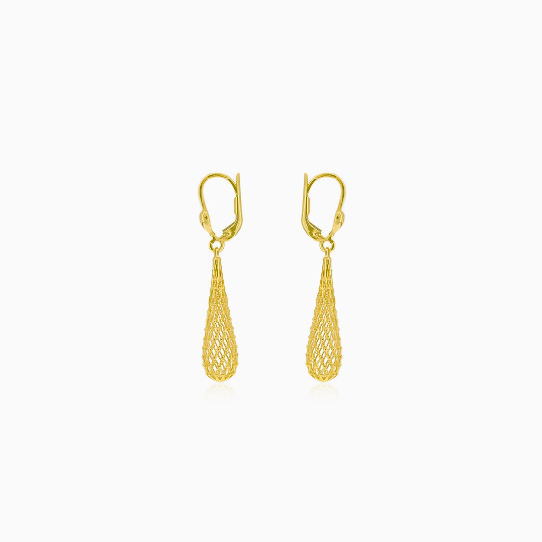 Tyto nádherné náušnice jsou vyrobeny z 14 karátového žlutého zlata a vynikají svým jedinečným designem visící kapky. Jejich složitý upletený vzor je opravdu výjimečný. Díky klasickému zapínání jsou pohodlné pro každodenní nošení.