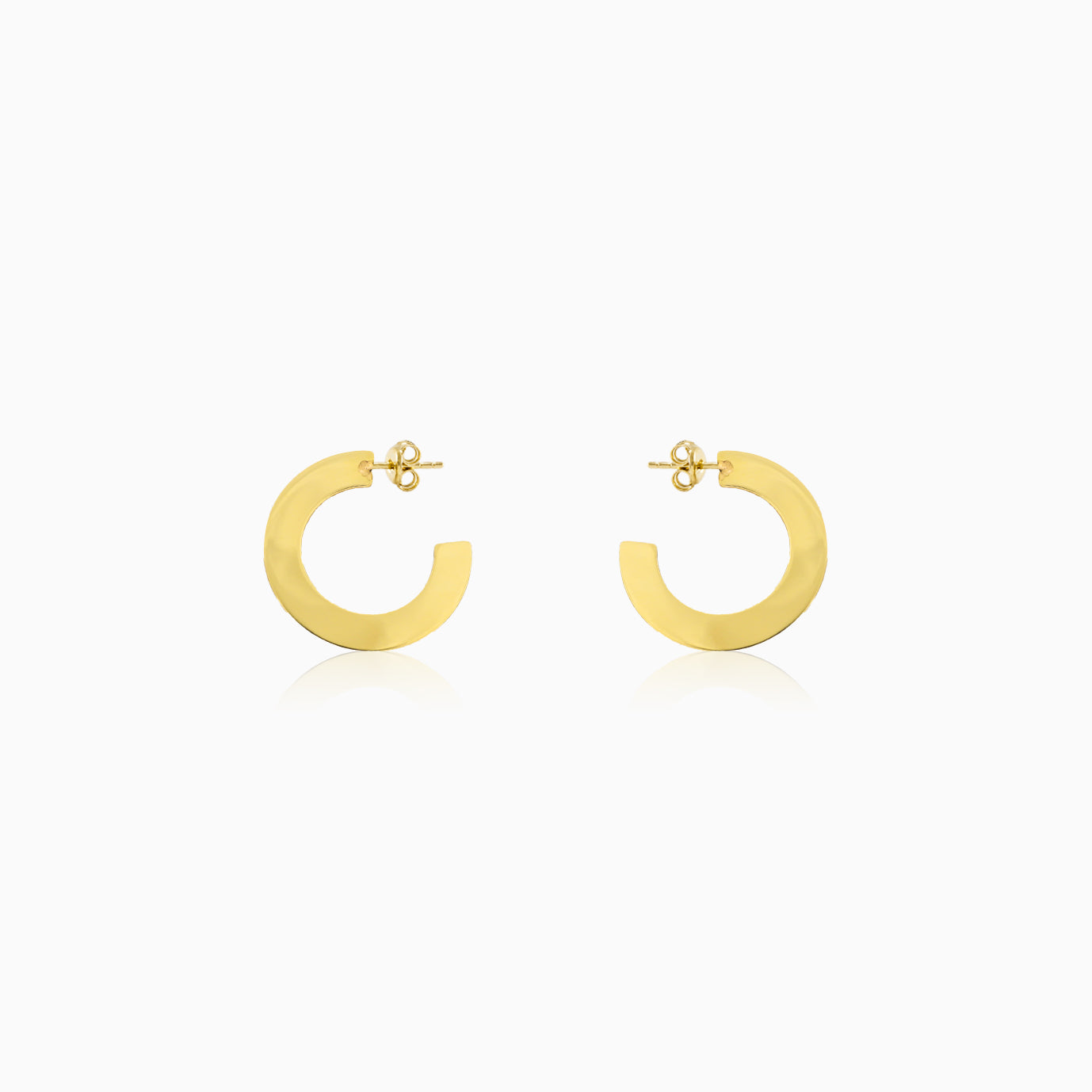 Tyto náušnice jsou vyrobeny z tenkých zlatých kroužků ve tvaru J s lesklým závěrem, které dodávají jednoduchý a elegantní vzhled.