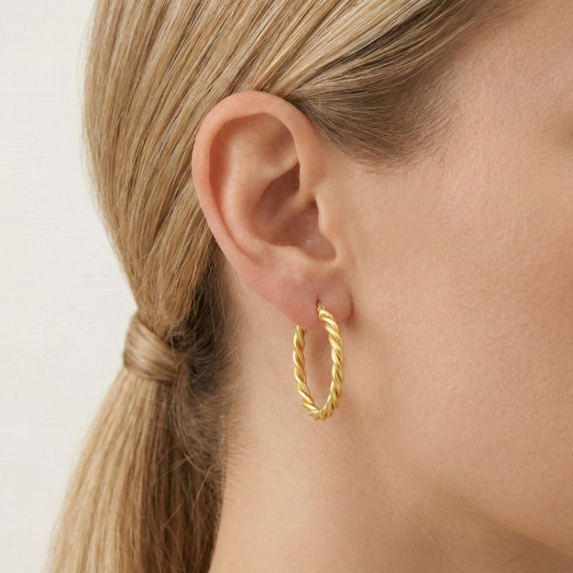 Oslňte kruhy ze 14kt žlutého zlata s bezpečným francouzským zámkem. Bez kamenů a s vysokým leštěním pro nadčasovou eleganci, ideální pro každou příležitost.