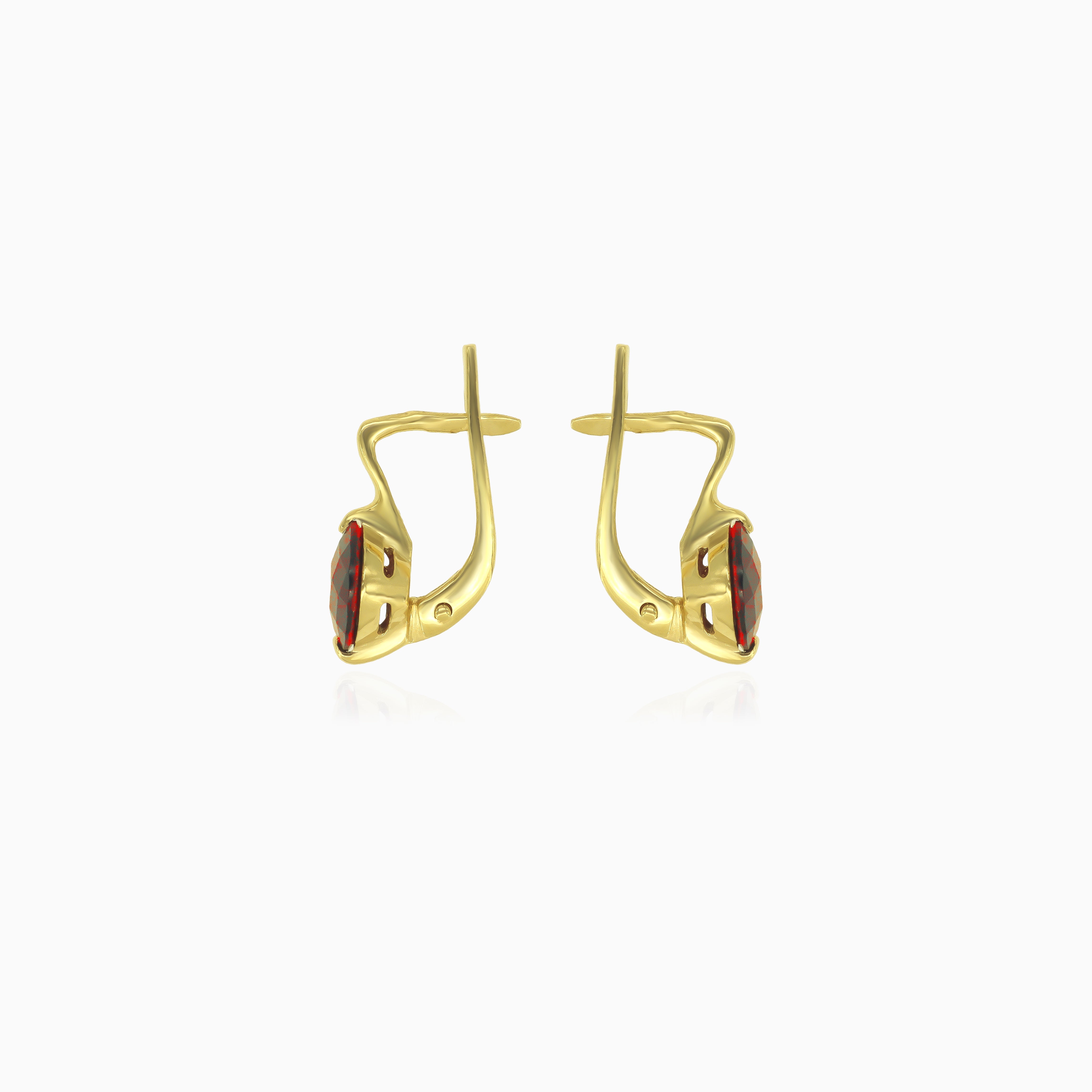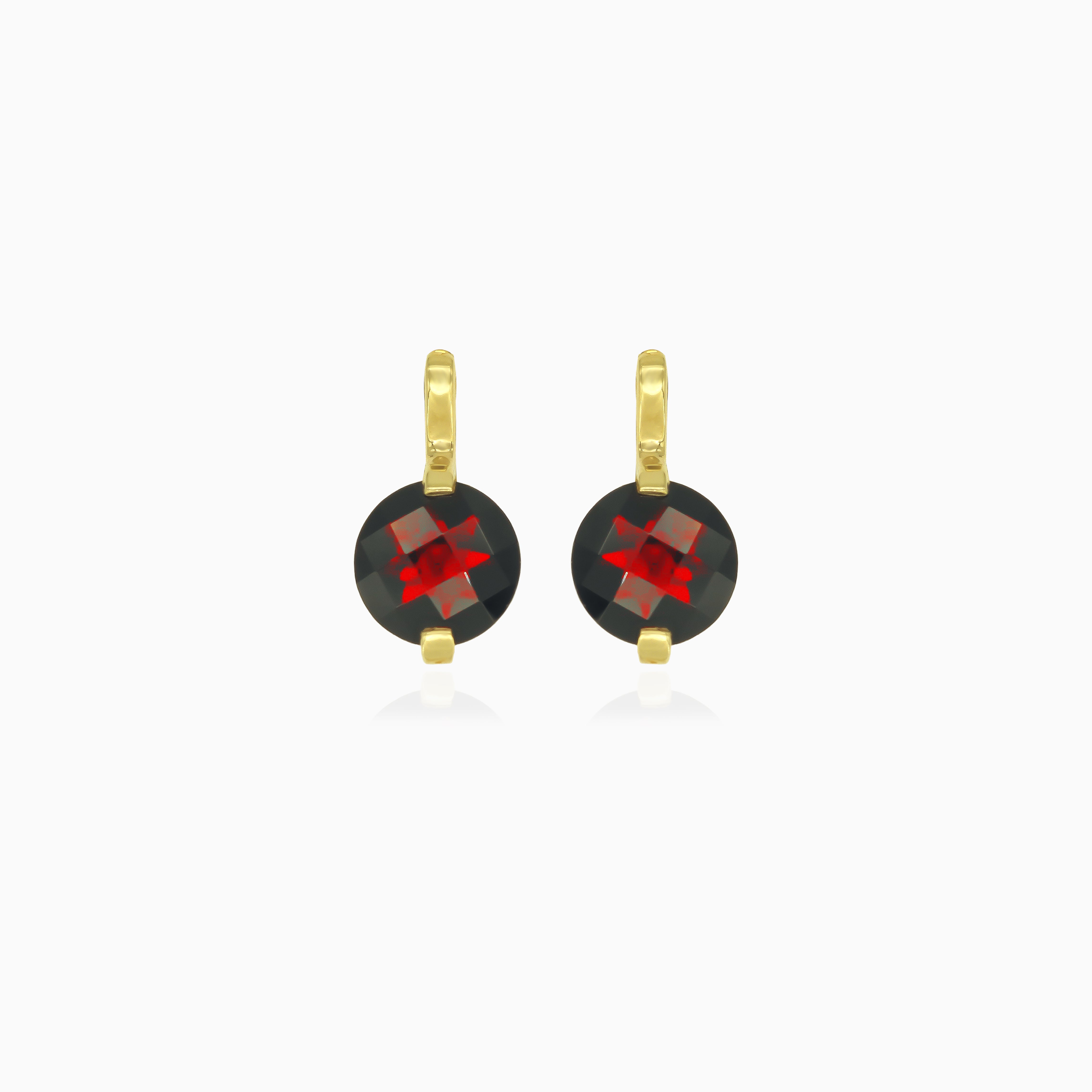 Náušnice ze žlutého zlata s kulatým granátovým solitérem