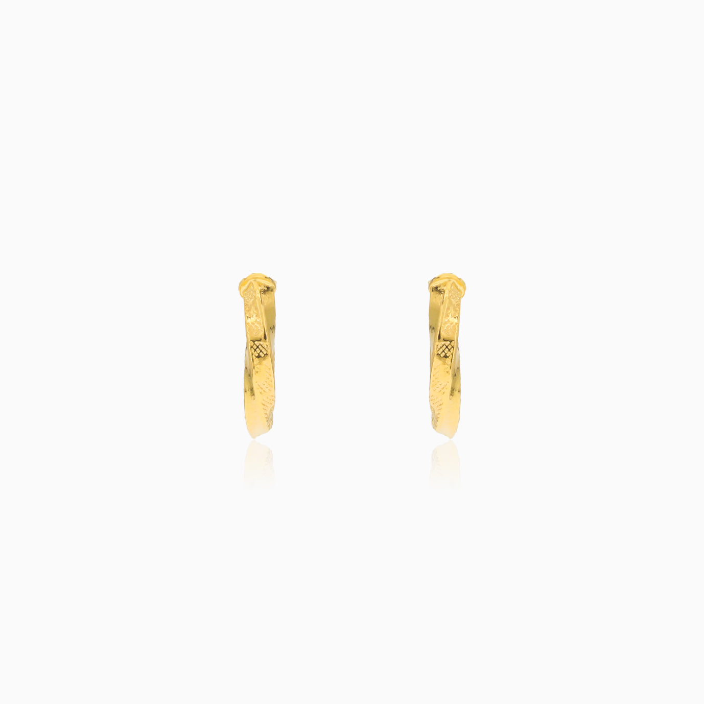 Tyto malé náušnice mají zakroucený design s dekorativním řeckým vzorem a jsou vyrobeny z 14kt žlutého zlata. Celé náušnice jsou duté, pro zajištění lehkosti nošení.