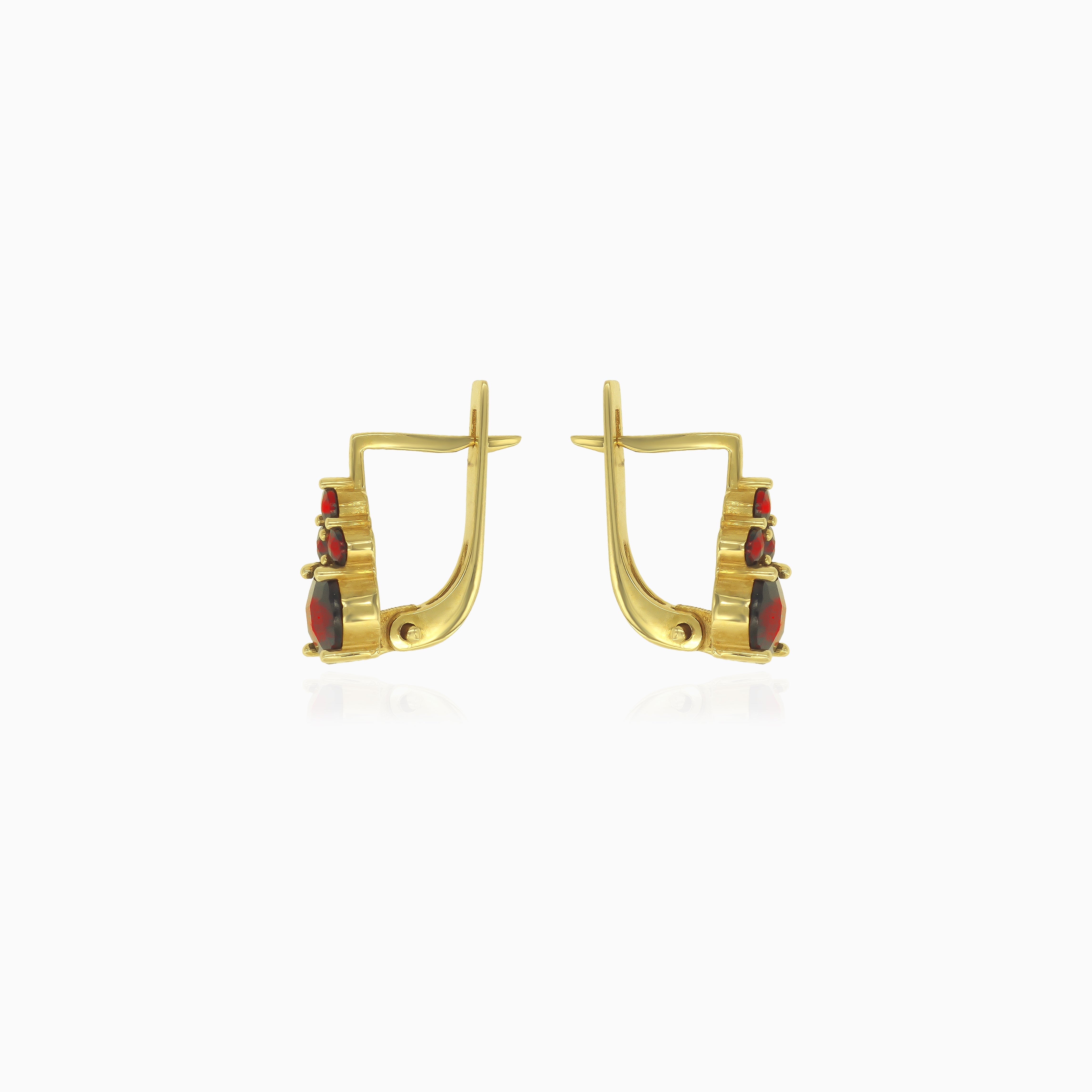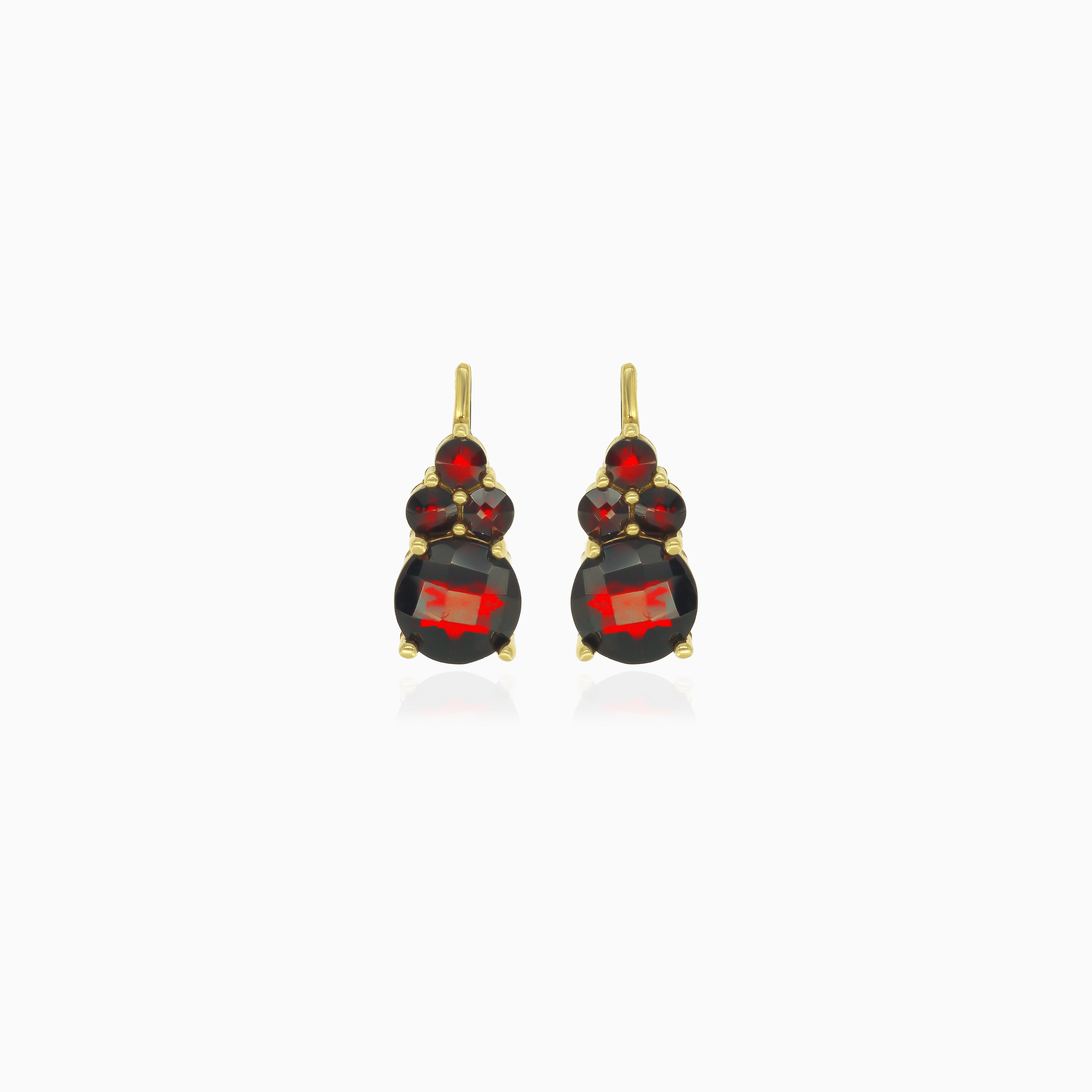 Ozdobte se elegancí v našich dámských kulatých granátových náušnicích s jemným krokovým brusem. Tyto náušnice, zasazené ve 14kt žlutém zlatě s bezpečným zasazením a zapínáním na karabinku, vyzařují sofistikovanost.