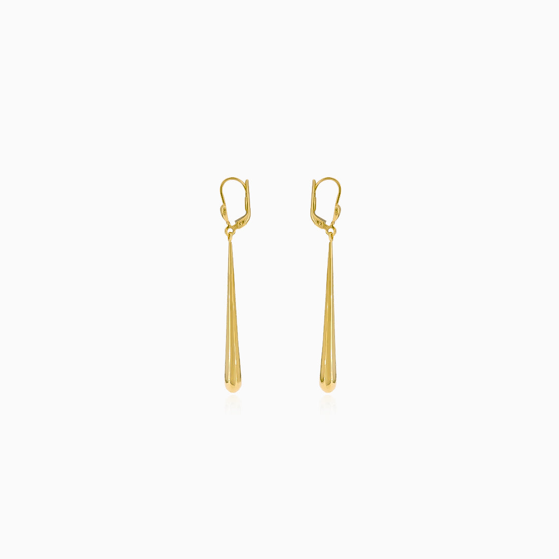 Zlaté visací náušnice ve tvaru prodloužené kapky
