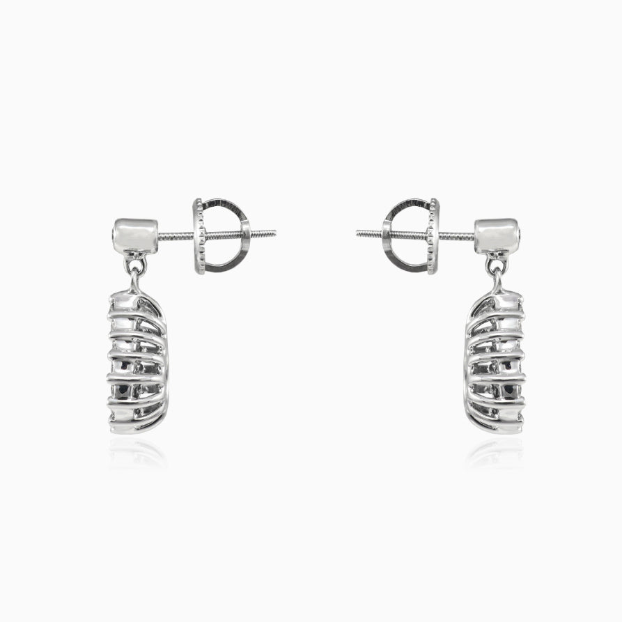 Ručně vyrobené třpytivé náušnice ve tvaru kapky, z 18-karátového bílého zlata a s diamanty brilliant brusu celkové váhy 1 ct.