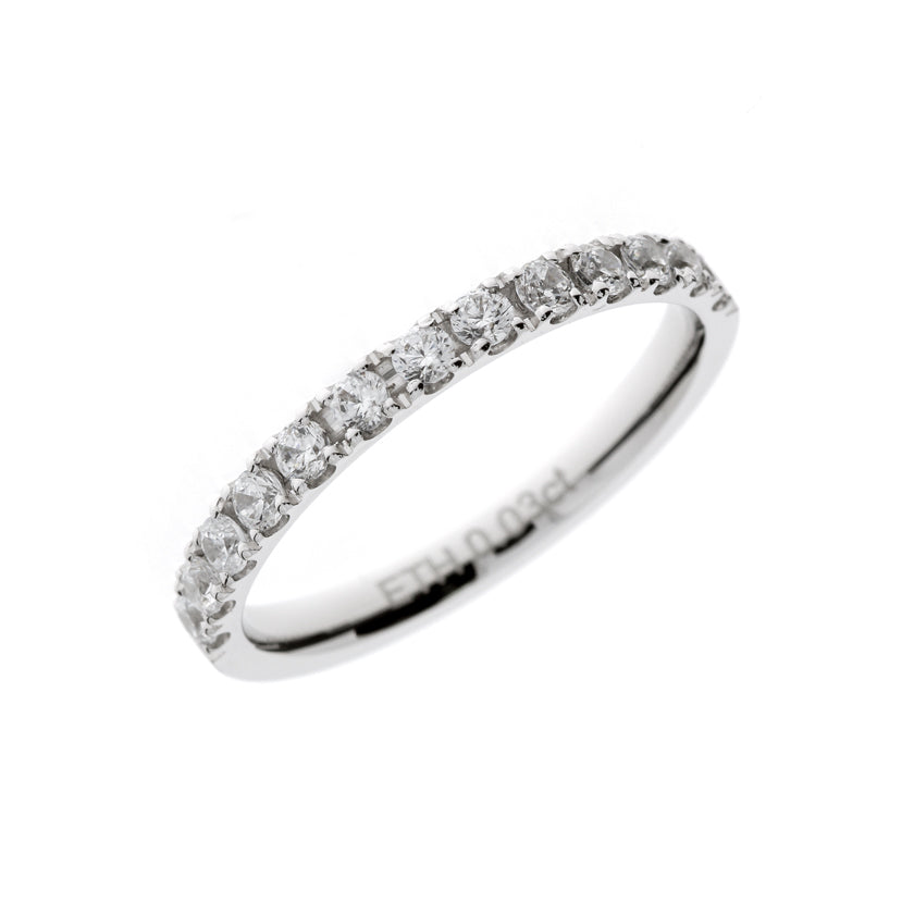 Tento dámský snubní prsten z bílého 14kt zlata je vybaven volitelným kubickým zirkonem nebo 0,39ct diamantem v kulatém jemném stupňovitém výbrusu. Prsten s tloušťkou 2,2 mm a zářezovým osazením má úžasný design, který ukazuje kameny na polovině pásku a dodává jim jiskru a eleganci.