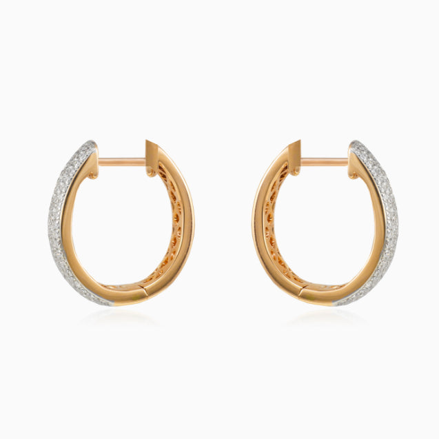 Velkolepé náušnice z 14-karátového růžového zlata ozdobené 206 diamanty brilliant brusu, které formují pěti-řadou pave.