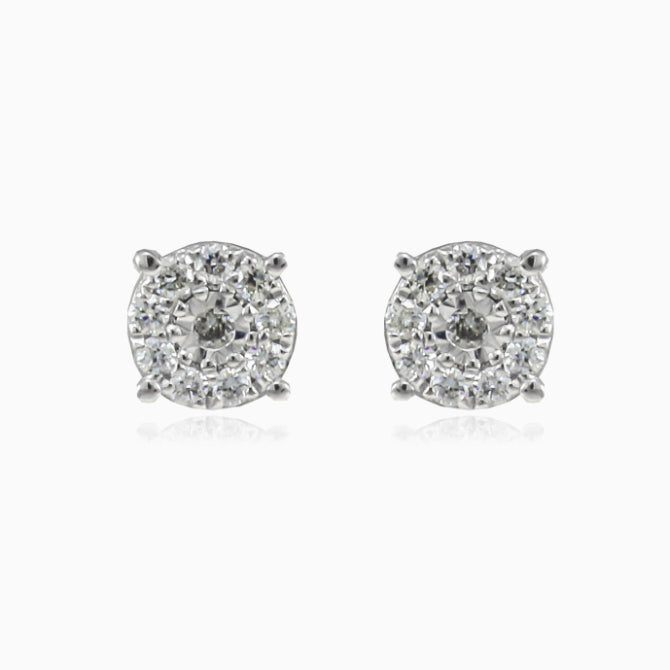 Zářící a oslnivé diamantové náušnice jsou vyrobeny z 14K bílého zlata. Uprostřed náušnice je vsazen diamant o hmotnosti 0.14ct. Náušnice mají puzetový uzávěr.