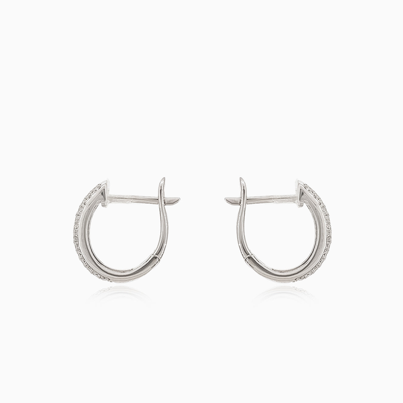 Tyto půvabné náušnice ze 14kt bílého zlata jsou zdobeny třemi řadami diamantů kulatého tvaru o hmotnosti 0,42ct s čistotou SI1 a barvou H. Mají zapínání na patent pro dodatečnou bezpečnost.