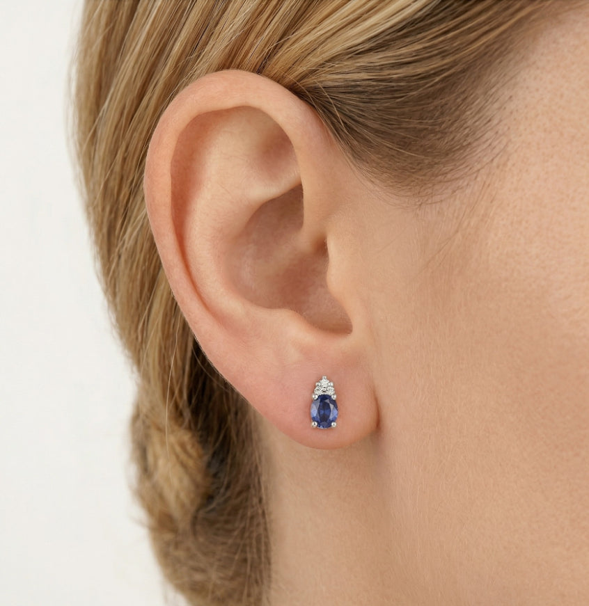 Visací náušnice se safírem a diamantem
