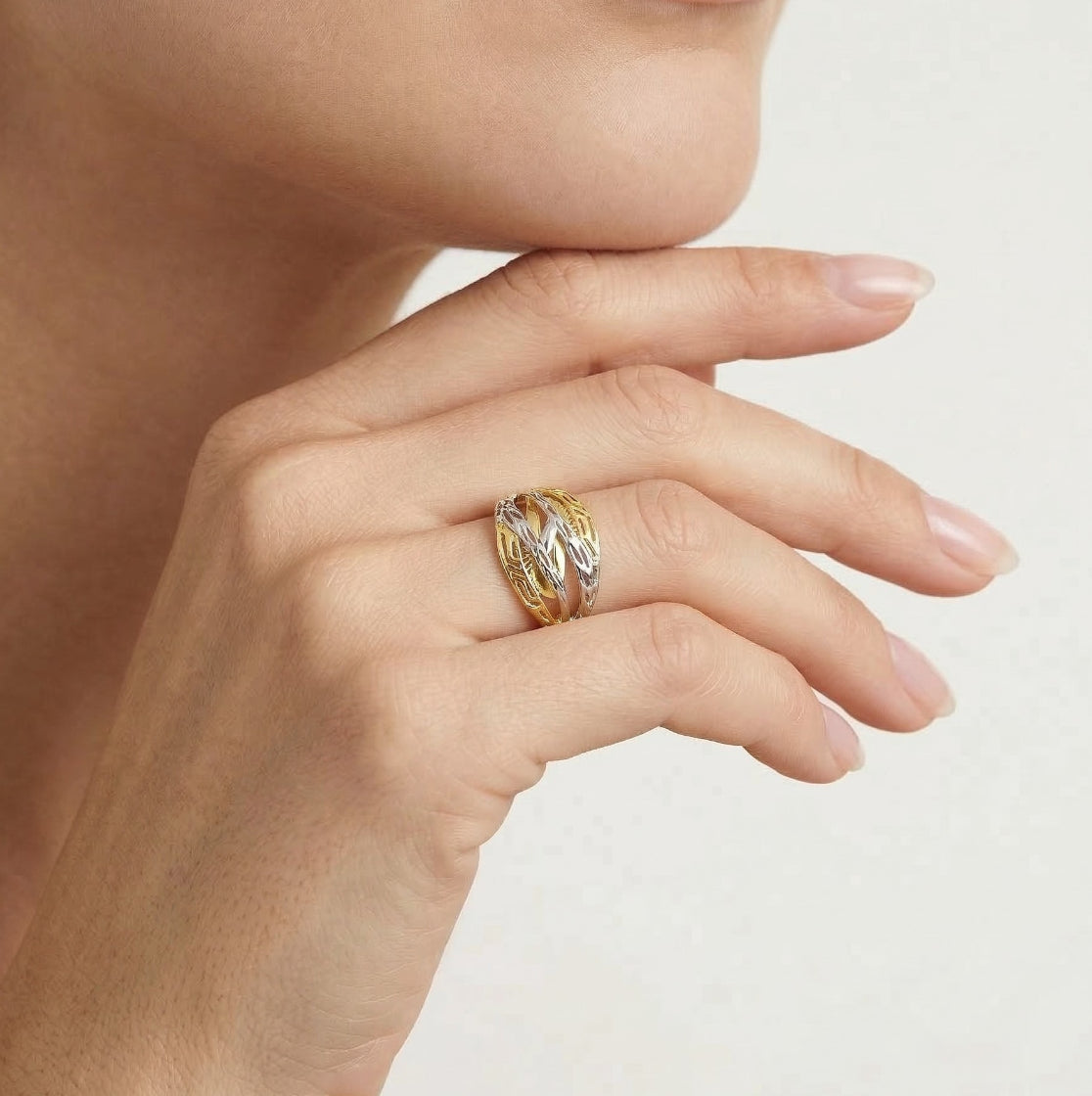 Dvoubarevný zlatý prsten s vyrytými liniemi Dvoubarevný zlatý prsten s vyrytými liniemi