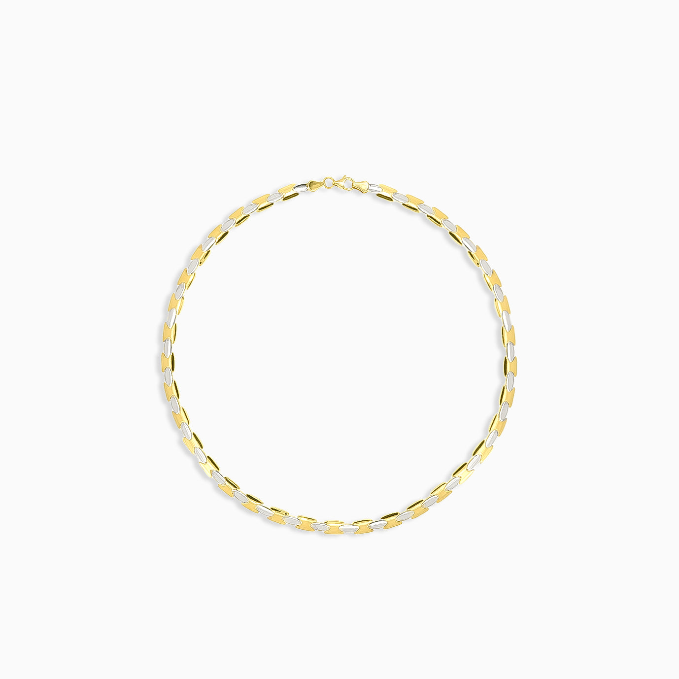 Tento elegantní náhrdelník ze 14karátového žlutého a bílého zlata s bezpečným zapínáním na humří sponu a vysoce leštěnou povrchovou úpravou je ideální pro dodání sofistikovanosti každému oblečení.