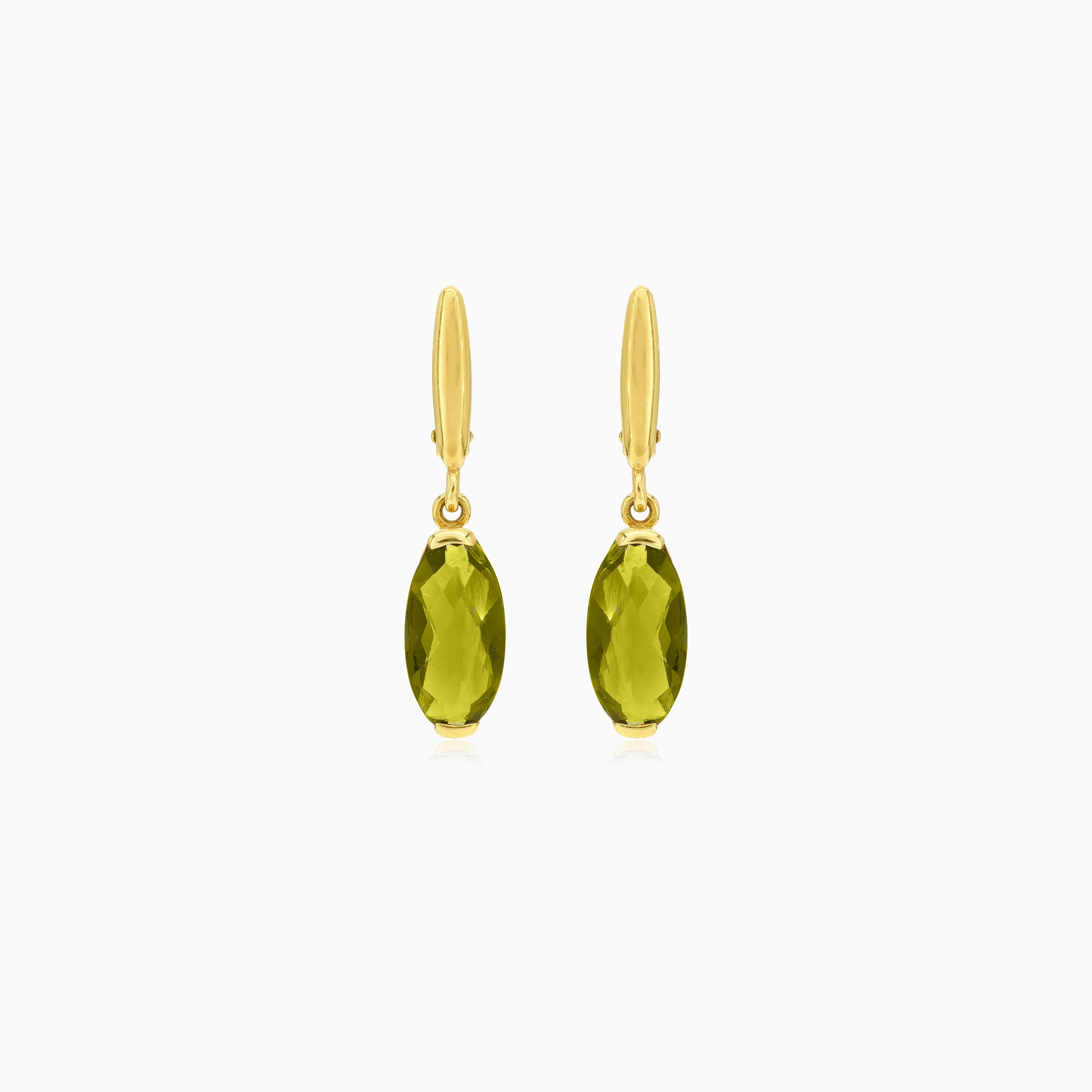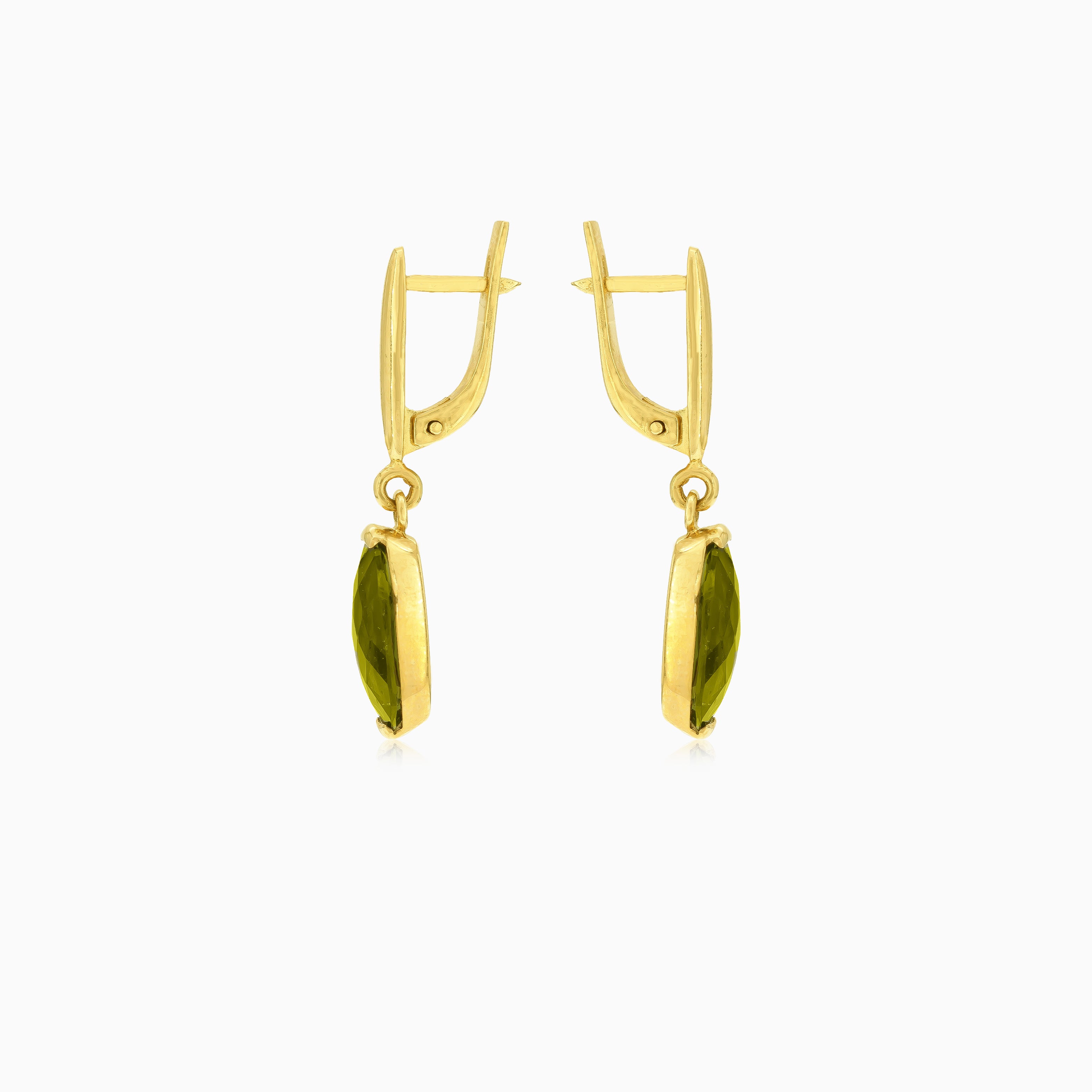 Vylepšete svou eleganci těmito náušnicemi ze 14kt žlutého zlata s vltavínem v oválném jemném stupňovitém výbrusu, bezpečně zasazeným do stylové tyčinkové soustavy. Zapínání na patentku zajišťuje bezpečnost i styl.