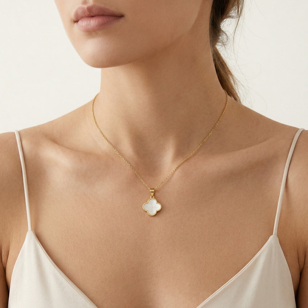 Objevte naši symbolickou eleganci s těmito dámskými přívěsky ze 14kt žlutého zlata, které představují nadčasový design bílé perleti v plochém broušení.