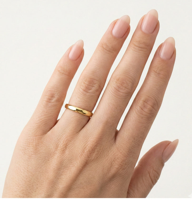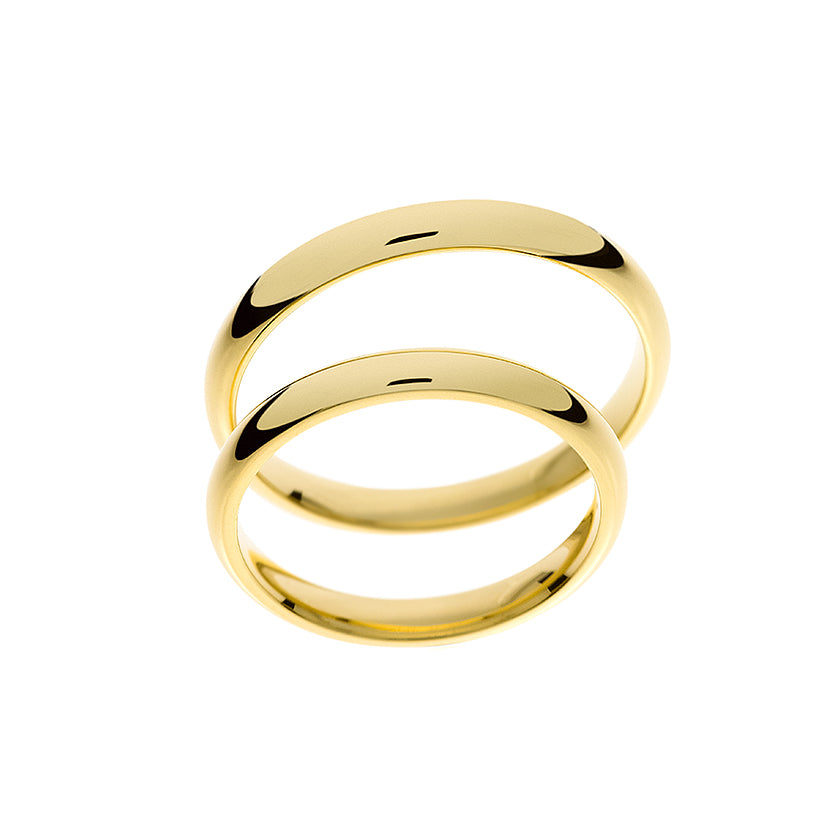 Tento elegantní snubní prsten pro muže a ženy je vyroben ze 14karátového žlutého zlata a má tloušťku 3 mm. Jeho základní kulatý tvar s hladce zaoblenými stranami z něj činí nadčasovou volbu pro každý pár, která svým klasickým designem symbolizuje trvalou lásku a závazek.