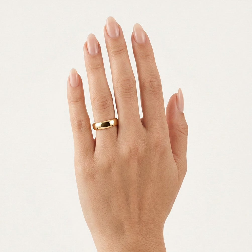 Široký hladký snubní prsten ze žlutého zlata