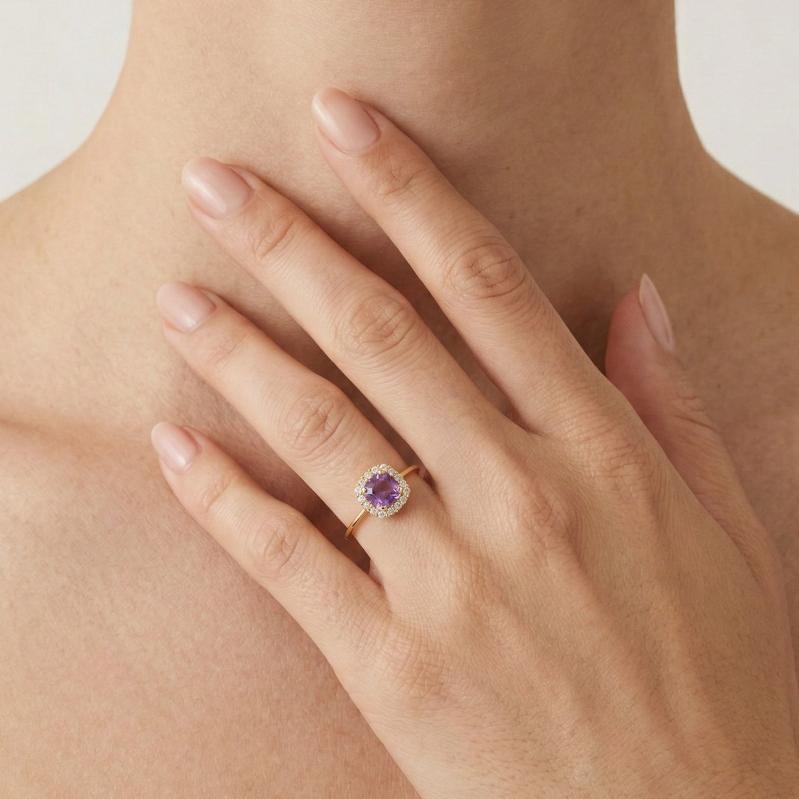 Zlatý prsten ametyst, prsten ametyst, prsten ženy ametyst