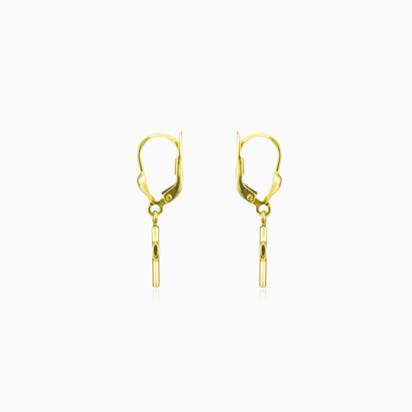 Visací křížkové náušnice z 14-karátového vysoce leštěného žlutého zlata ozdobené jedním kulatým kubickým zirkonem.