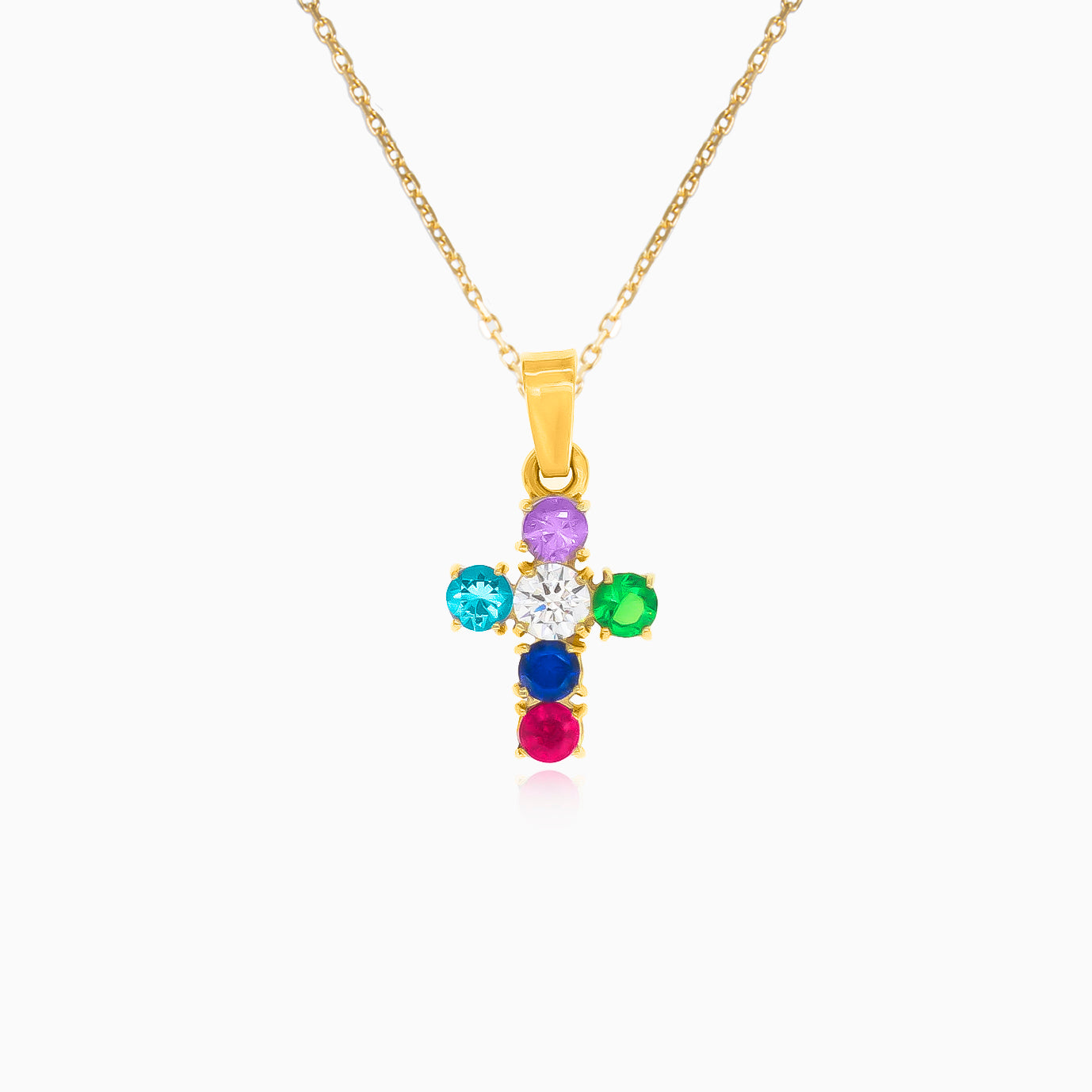 Vícebarevný přívěsek kříže ze žlutého zlata