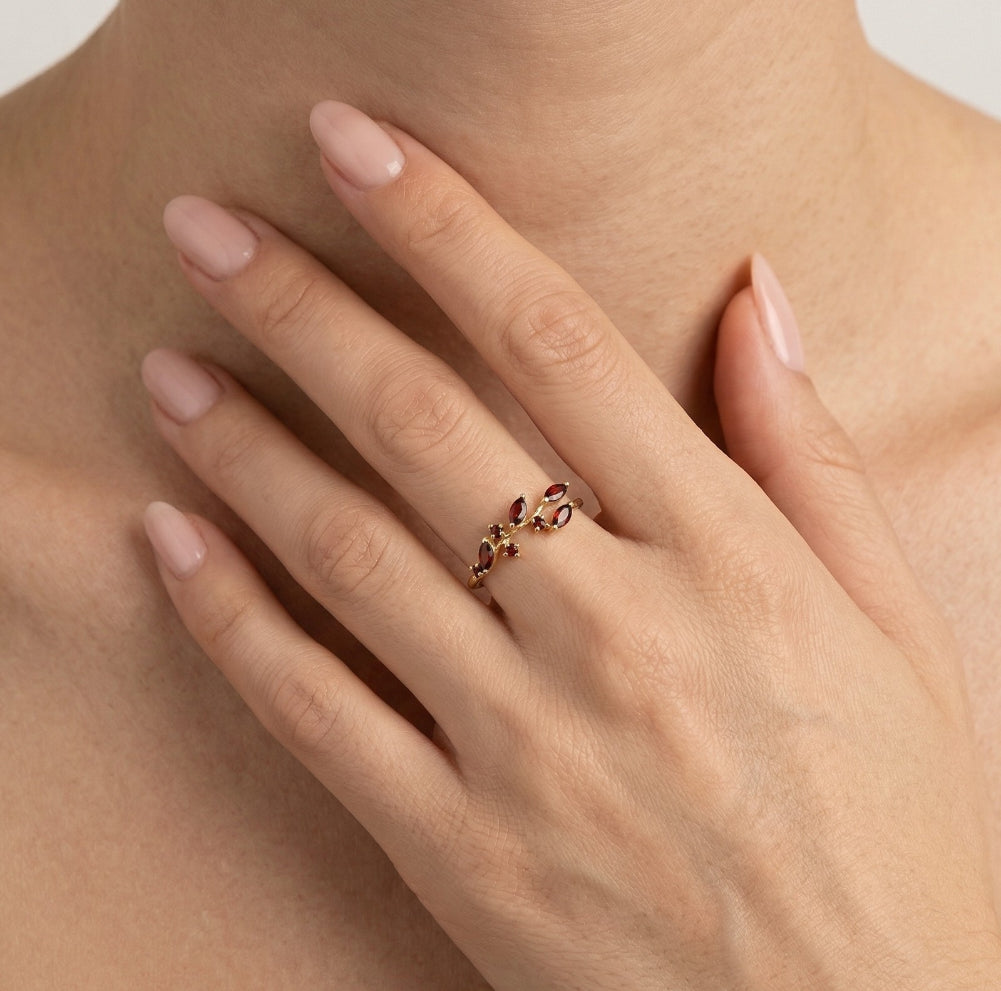 Elegantní granátový prsten se smíšenými broušenými kameny