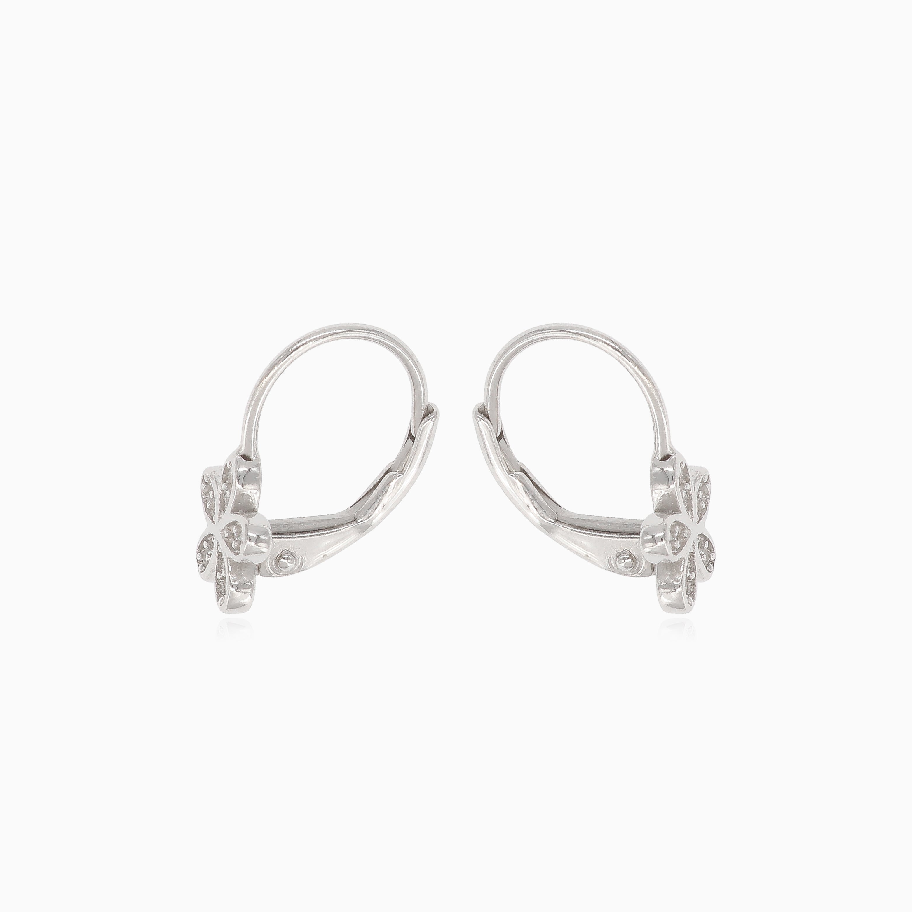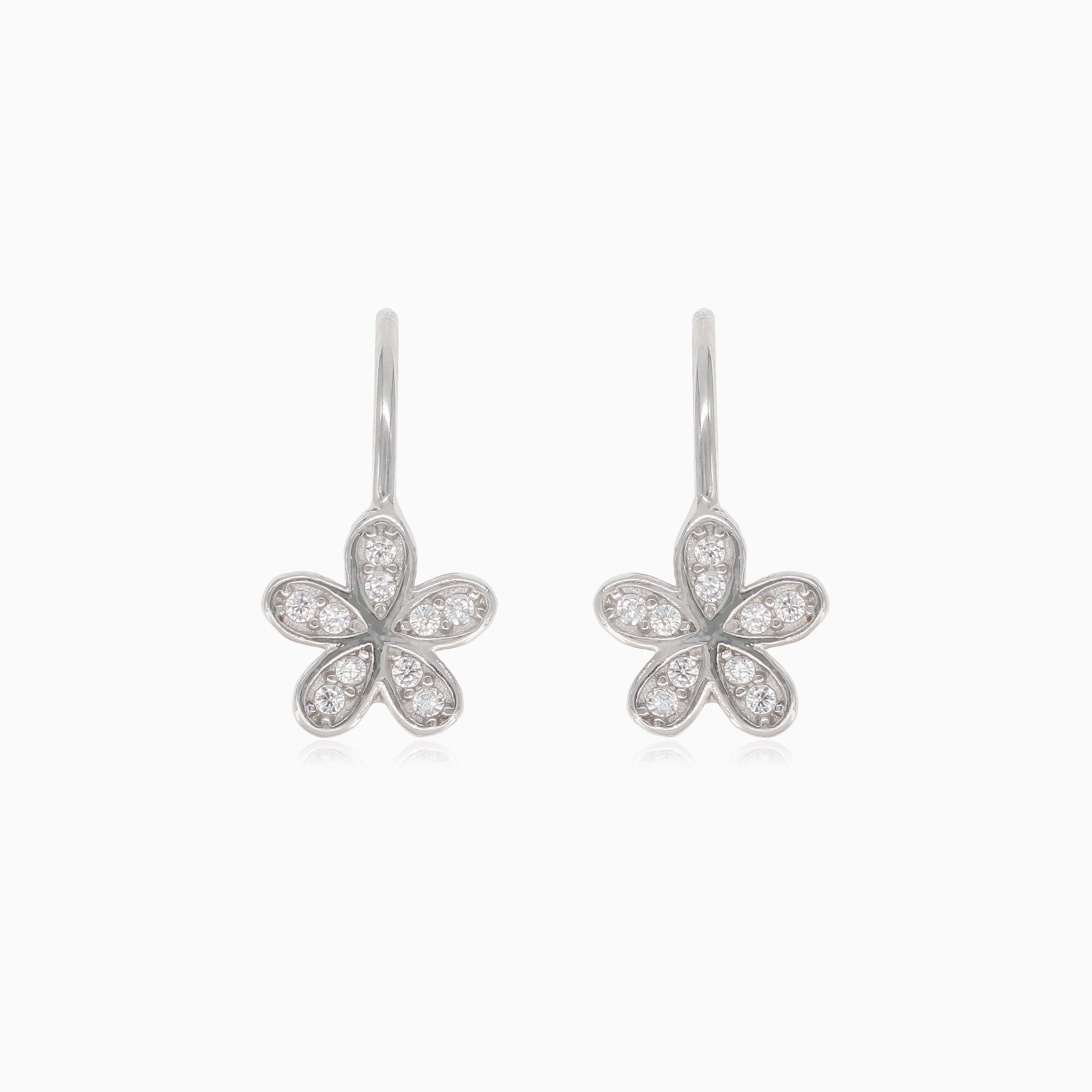 Dodejte svému outfitu nádech elegance s těmito úžasnými stříbrnými květinovými náušnicemi zdobenými třpytivými zirkony a s pohodlným zapínáním na páčku.