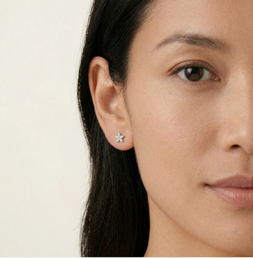 Vylepšete svou eleganci stříbrnými náušnicemi s jemnými drobnými zirkony, které dodají každému outfitu nádech sofistikovanosti.