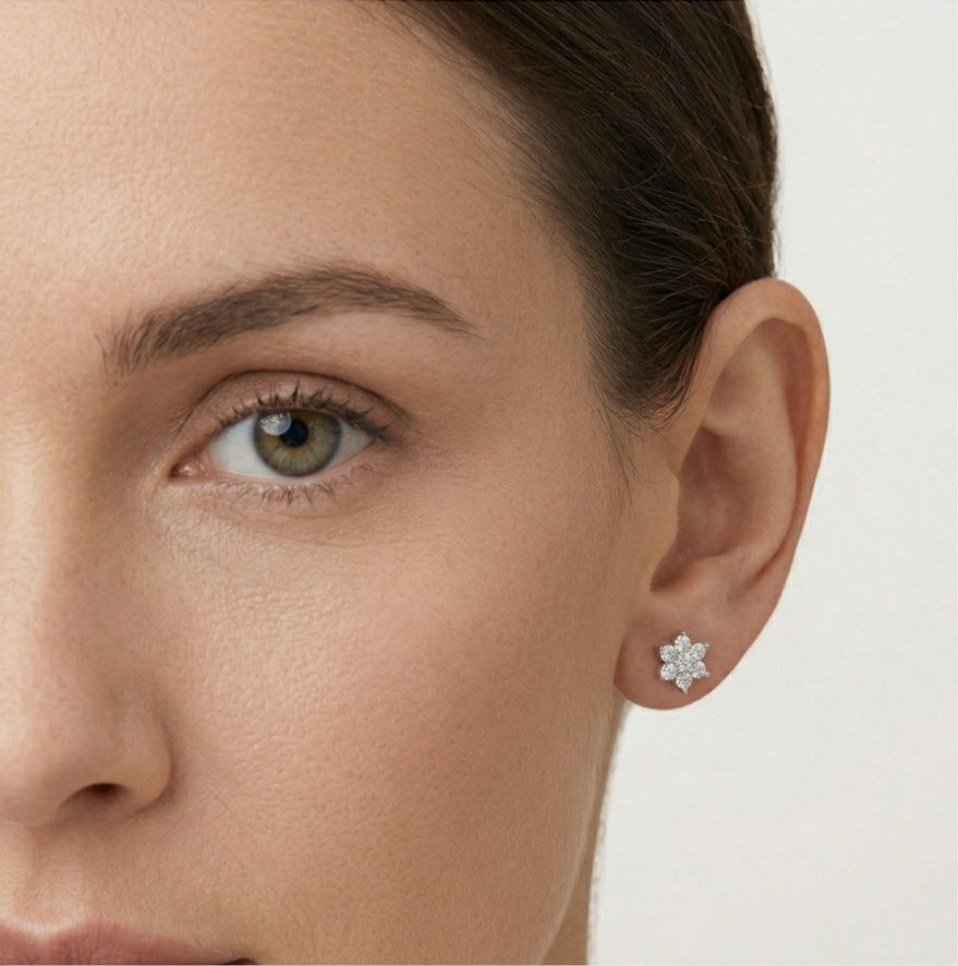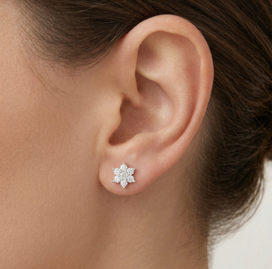 Ozdobte své uši těmito úžasnými stříbrnými náušnicemi se složitými květinovými vzory z kulatých zirkonů.