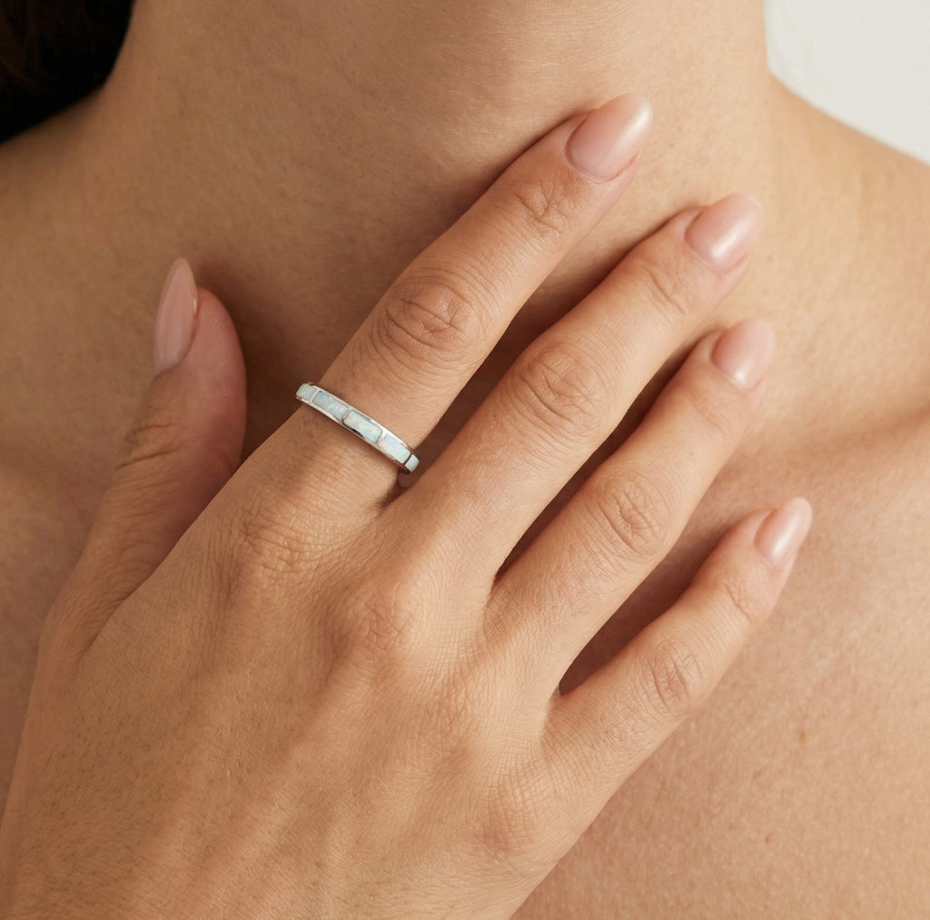 Tento stříbrný prsten má elegantní obdélníkovou bílou opálovou smaltovanou pastu zasazenou do jednoduchého, ale elegantního pásku. Čisté linie prstenu podtrhují krásu opálu a jsou ideální jak pro každodenní nošení, tak pro zvláštní příležitosti. Minimalistický, a přesto úžasný doplněk každé sbírky.