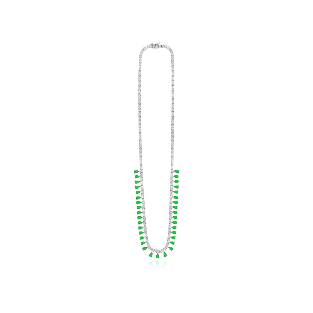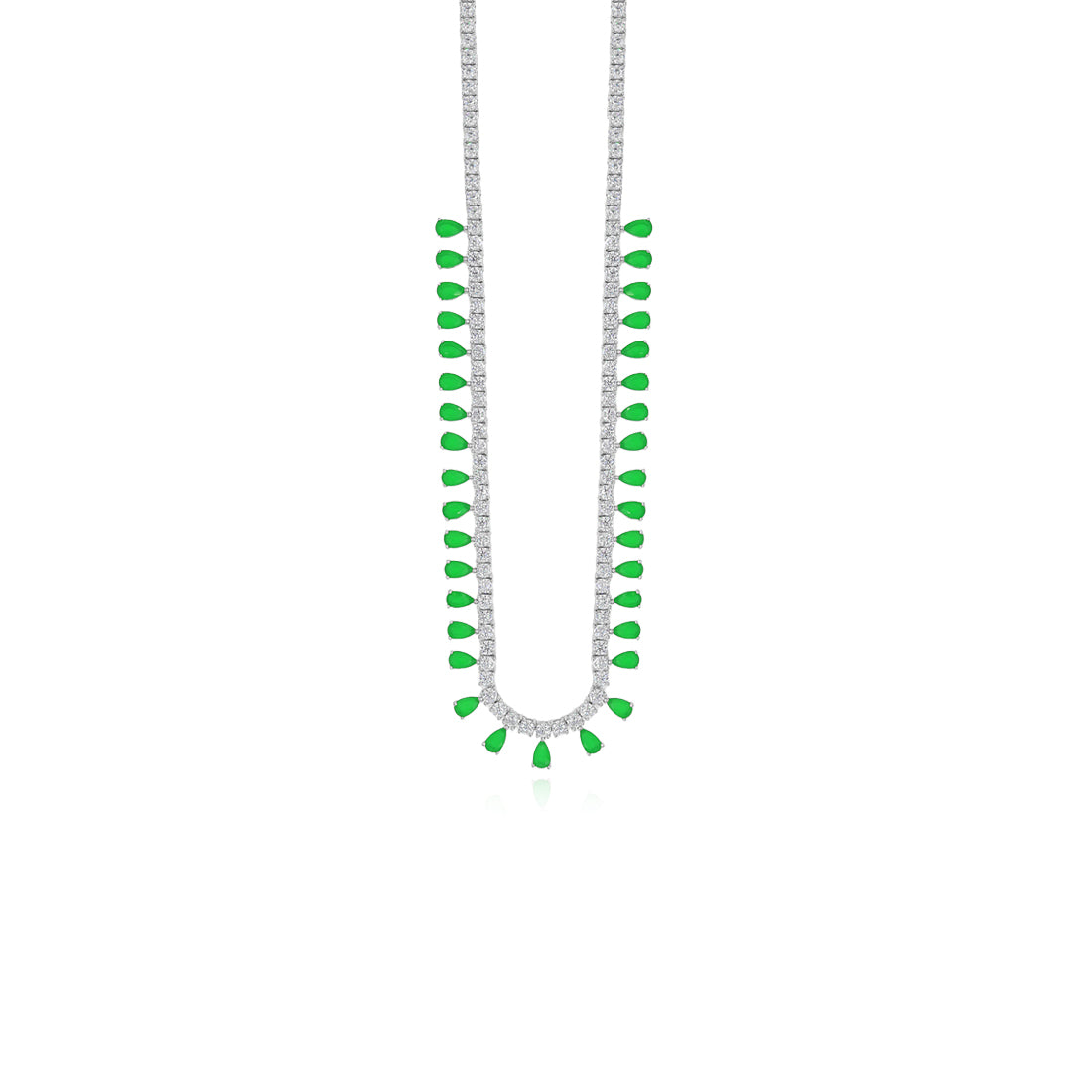 Stříbrný náhrdelník s hruškovým smaragdem a kubickými zirkony