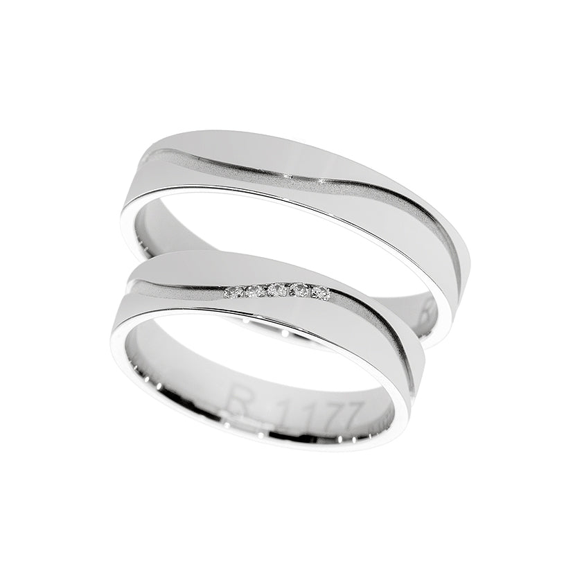 Snubní prsten z bílého zlata se zakřivenou matnou linií