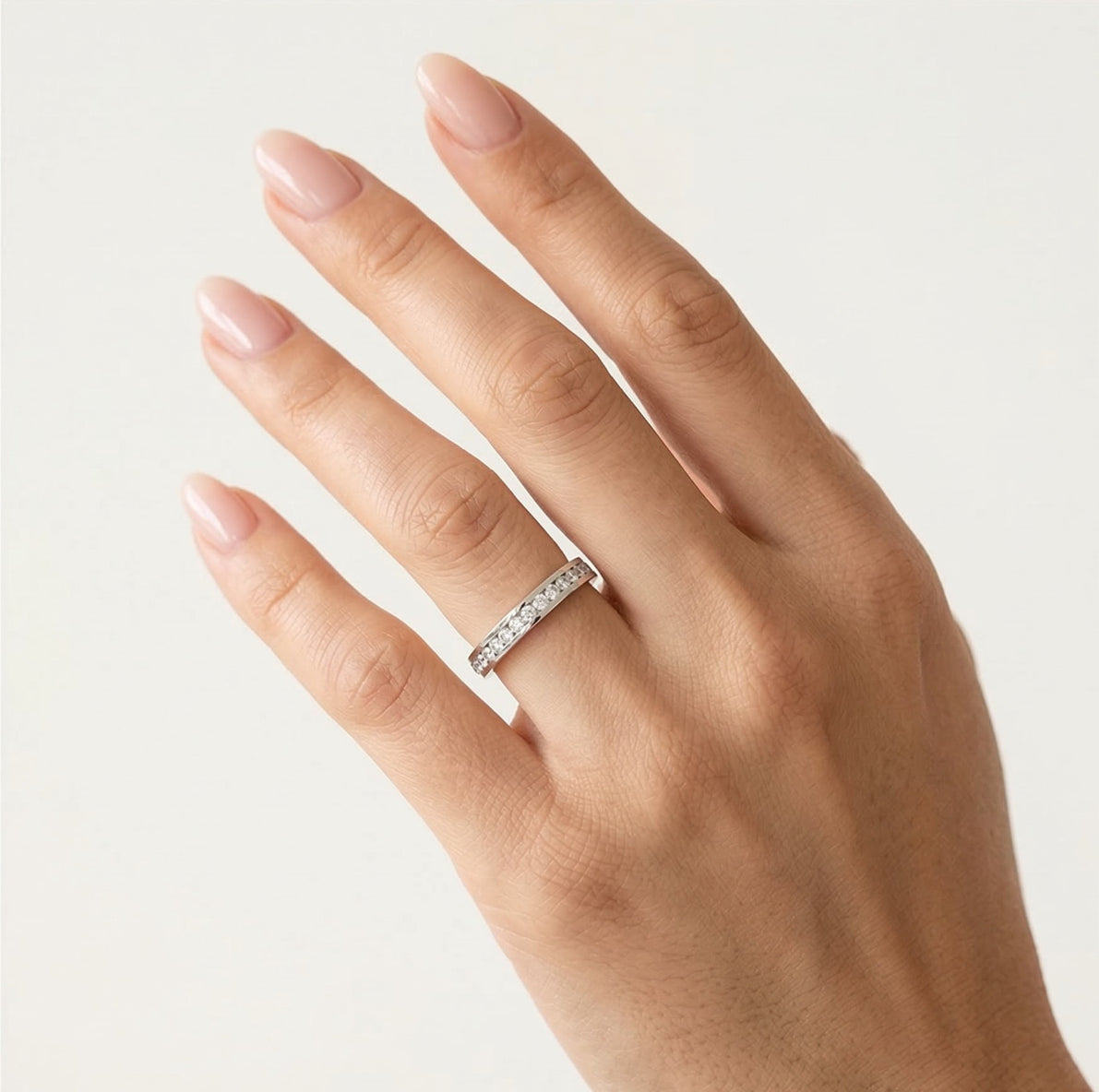 Tento nádherný 14kt snubní prsten pro ženy a muže má jedinečný design z bílého zlata o tloušťce 3 mm. K dispozici v hladkém provedení nebo zdobený 0,68ct kubickým zirkonem nebo diamantem v kulatém jemném stupňovitém výbrusu, osazený kanálem. Dokonalá kombinace klasické elegance a moderního stylu, ideální pro každý pár.