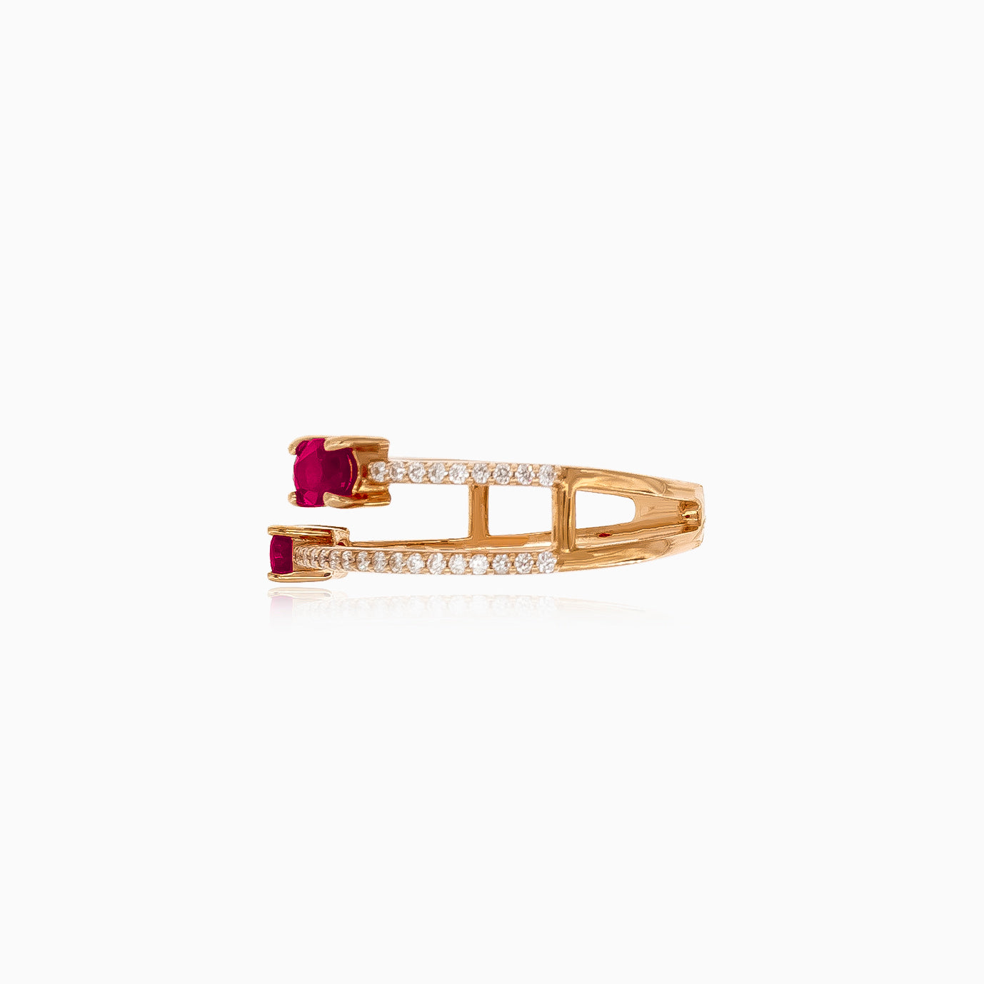 Dvojitý prsten z růžového zlata s rubíny a diamanty