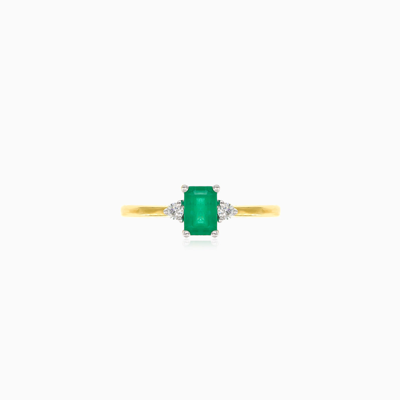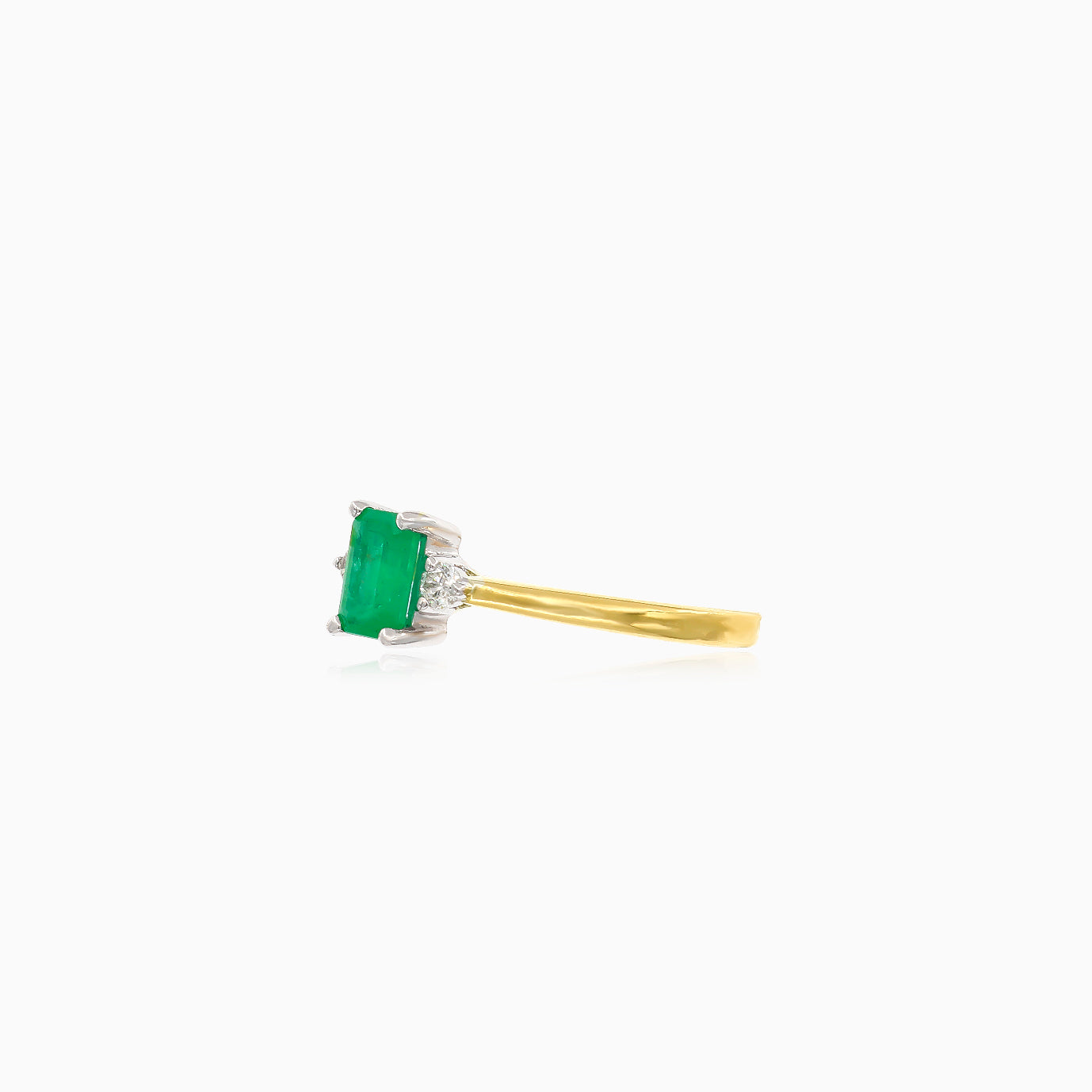 Elegantní prsten ze žlutého zlata s diamanty a smaragdem