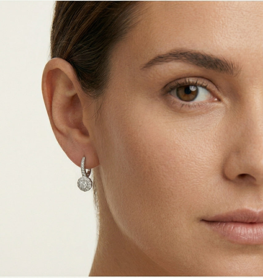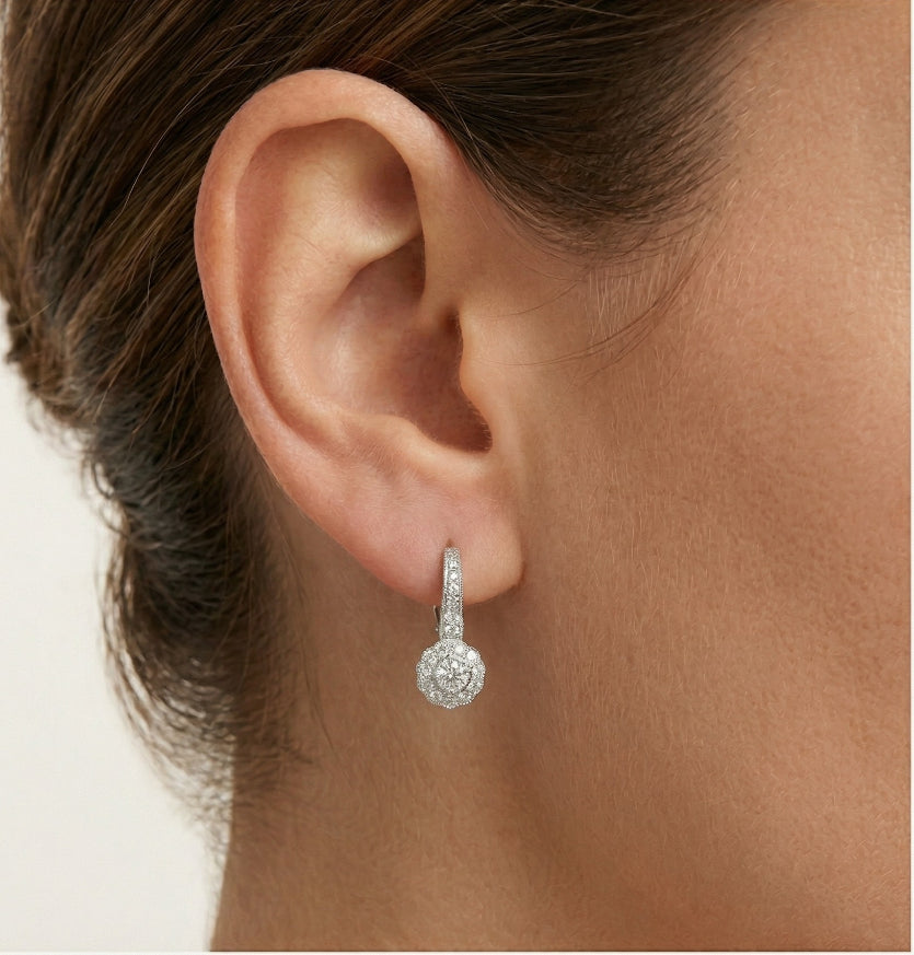 Vintage květinové náušnice jsou vyrobeny z 14K bílého zlata a jsou zdobeny 38 brilianty s diamantovým výbrusem. Náušnice jsou opatřeny patentovým uzavíráním.