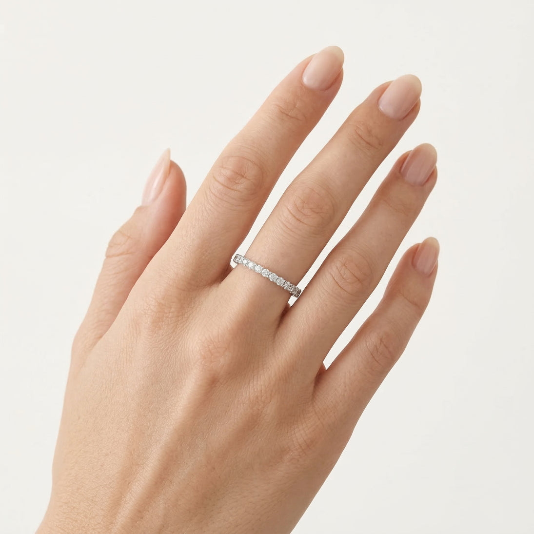 Zařte s tímto 14kt bílým zlatým prstenem zdobeným řadou kulatých diamantů o celkové hmotnosti 0,17ct, s čistotou SI1 a barvou H.